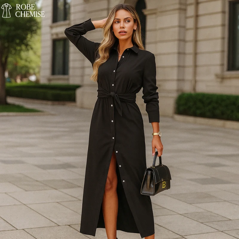 Découvre la Robe Chemise Noire, l’Indispensable Élégant
