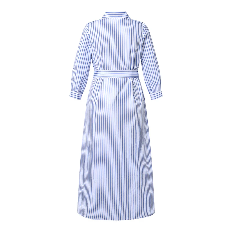Découvre la Robe Chemise Rayée Bleu et Blanc