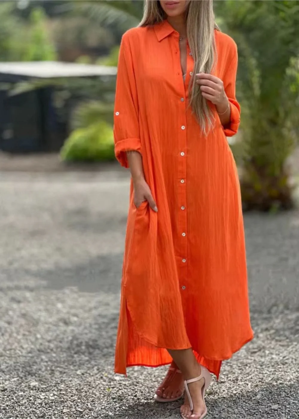 Idéale pour une journée en ville ou une sortie en bord de mer, cette robe chemise terracotta ne laisse personne indifférent
