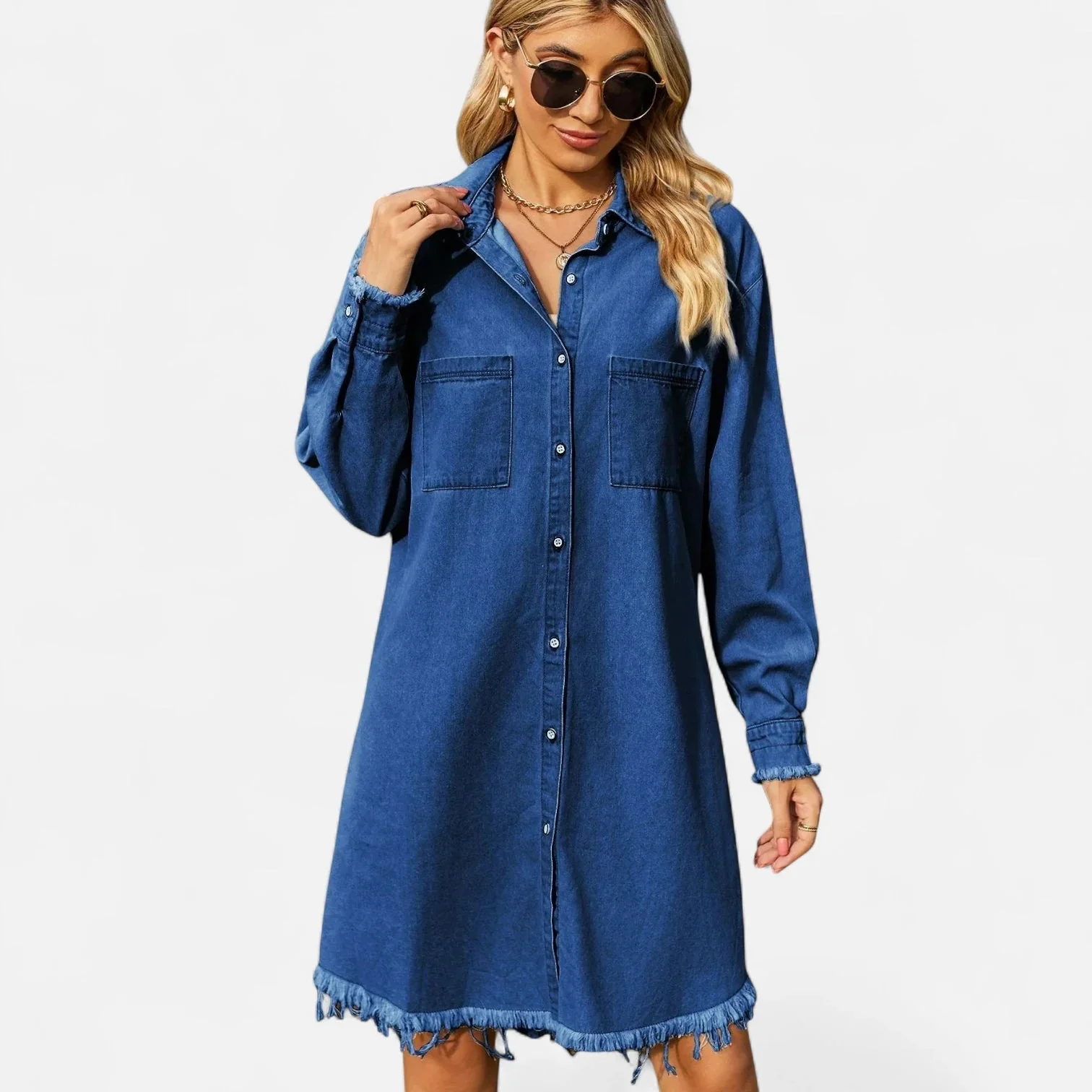 Robe chemisier en jean – coupe droite structurée mi-cuisse