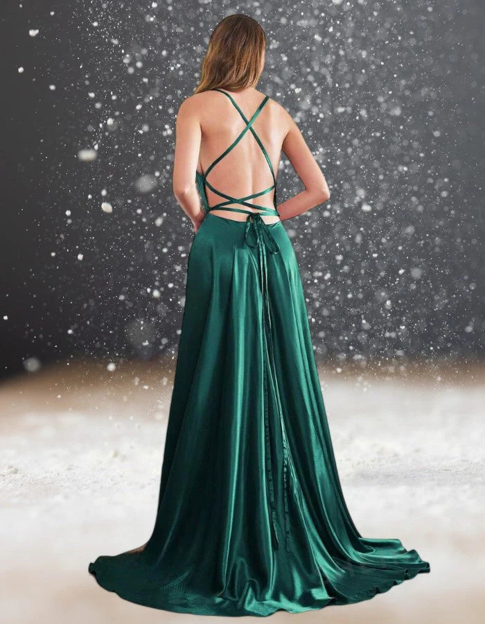 Chaque événement important nécessite une tenue exceptionnelle. Regardez cette robe de cocktail somptueuse, idéale pour un mariage ou toute autre cérémonie importante. Elle est confectionnée en satin luxueux et présente une couleur vert foncé élégante qui capte et reflète la lumière. Son dos nu séduira par son audace raffinée, tandis que les délicates bretelles spaghetti ajoutent une touche de finesse à la silhouette. Une pièce destinée aux femmes qui veulent briller, surprendre et laisser une impression inoubliable.