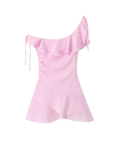 Élégante, féminine et résolument moderne : cette robe cocktail rose poudré est faite pour attirer les regards sans en faire trop. Son design asymétrique et son volant délicat apportent ce petit “wow” qui transforme une tenue simple en vraie pièce de soirée.