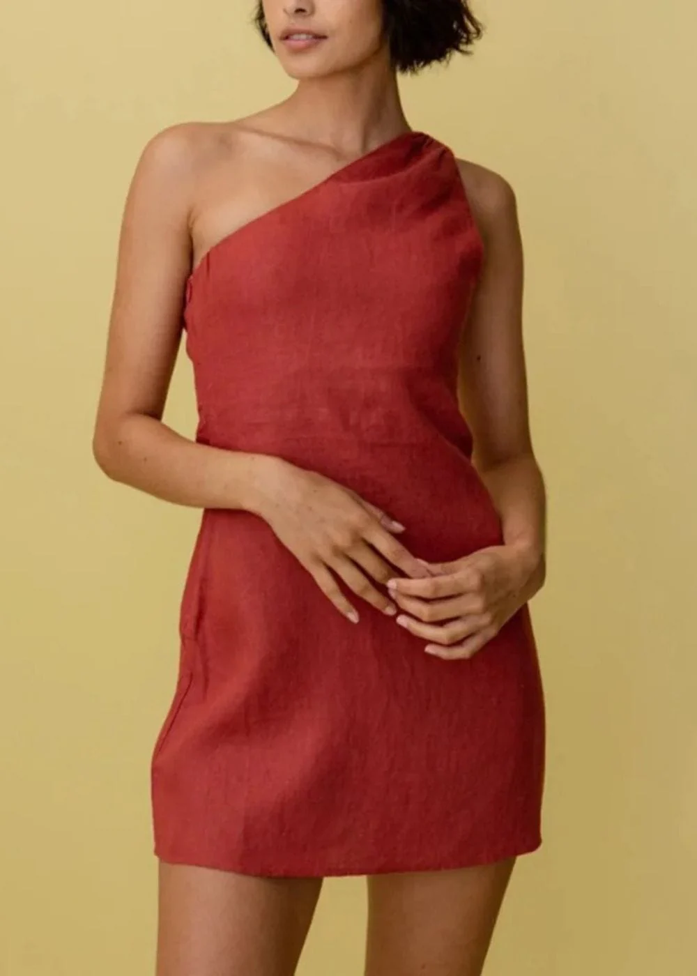 Laisse-toi séduire par cette robe cocktail terracotta courte qui ne laisse personne indifférent. Son design asymétrique à une épaule lui confère une allure audacieuse et raffinée, tandis que sa coupe courte flatte subtilement la silhouette. Son tissu fluide épouse délicatement les courbes sans les contraindre, offrant une sensation de confort absolu tout en mettant en valeur ta féminité naturelle. C’est la robe parfaite pour illuminer une soirée avec une élégance simple mais percutante.