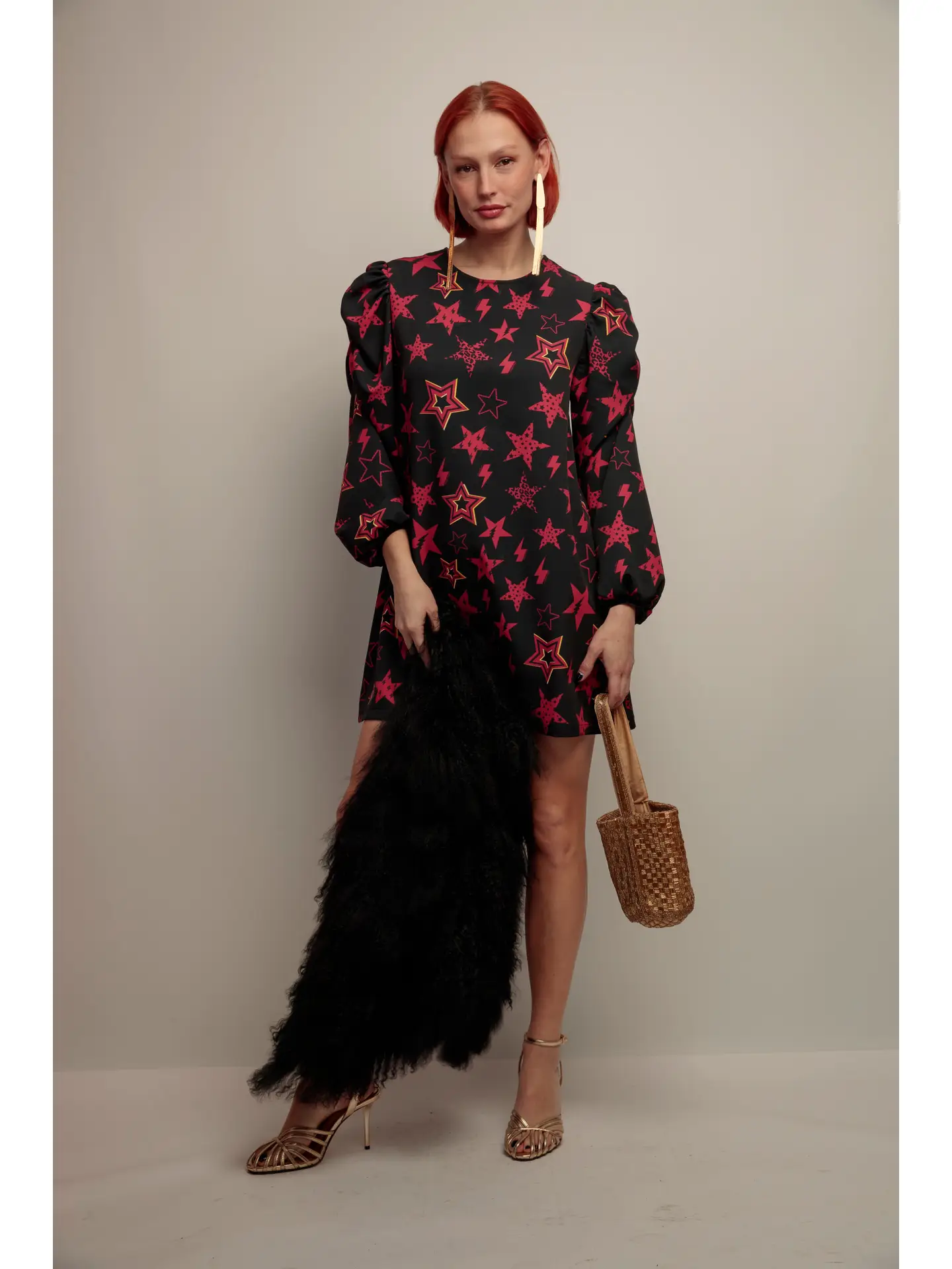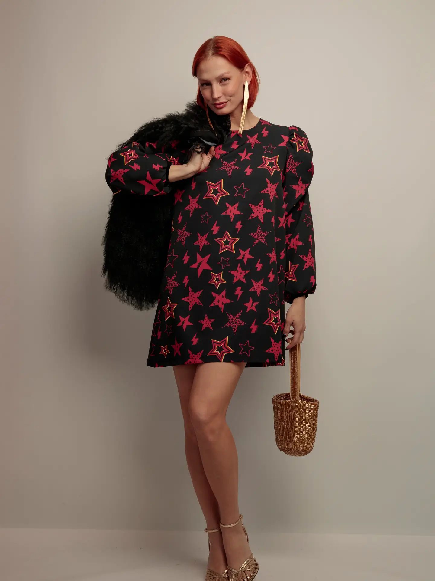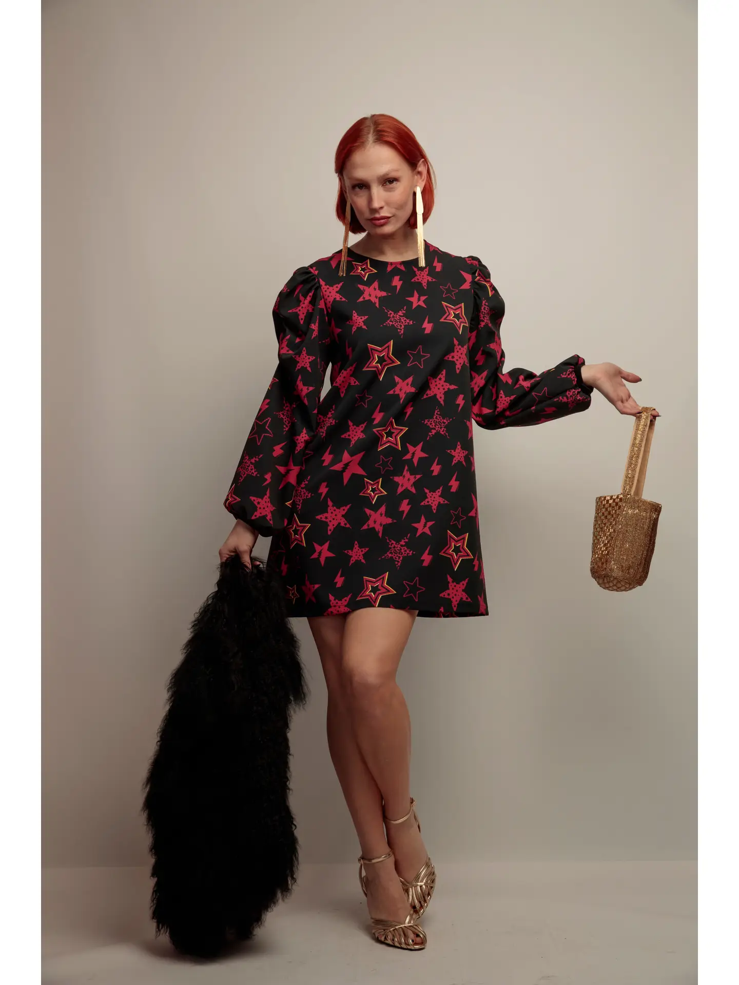 Robe courte imprime etoiles grenat femme – Essence Fete