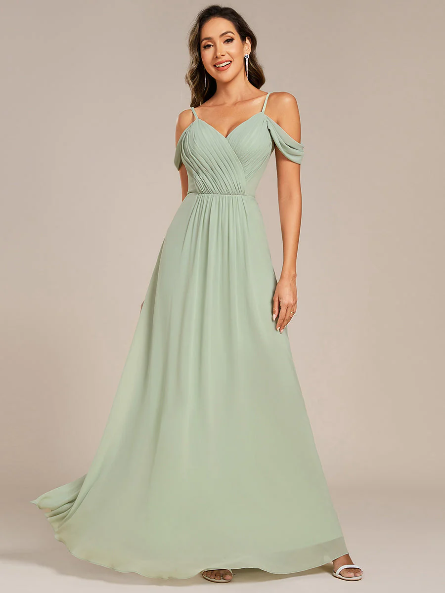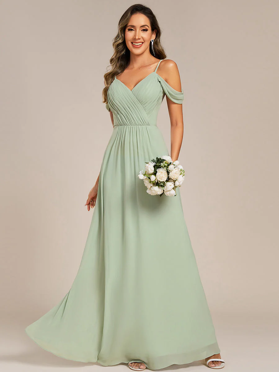 Romantique et intemporelle, cette robe longue à épaules dénudées présente une silhouette fluide et un tissu doux au drapé élégant. Son décolleté plongeant ajoute une touche d’élégance, tandis que sa longueur au sol la rend idéale pour les mariages, les soirées habillées ou les mariages d’été.