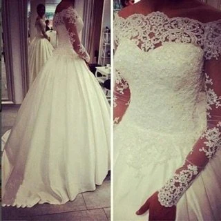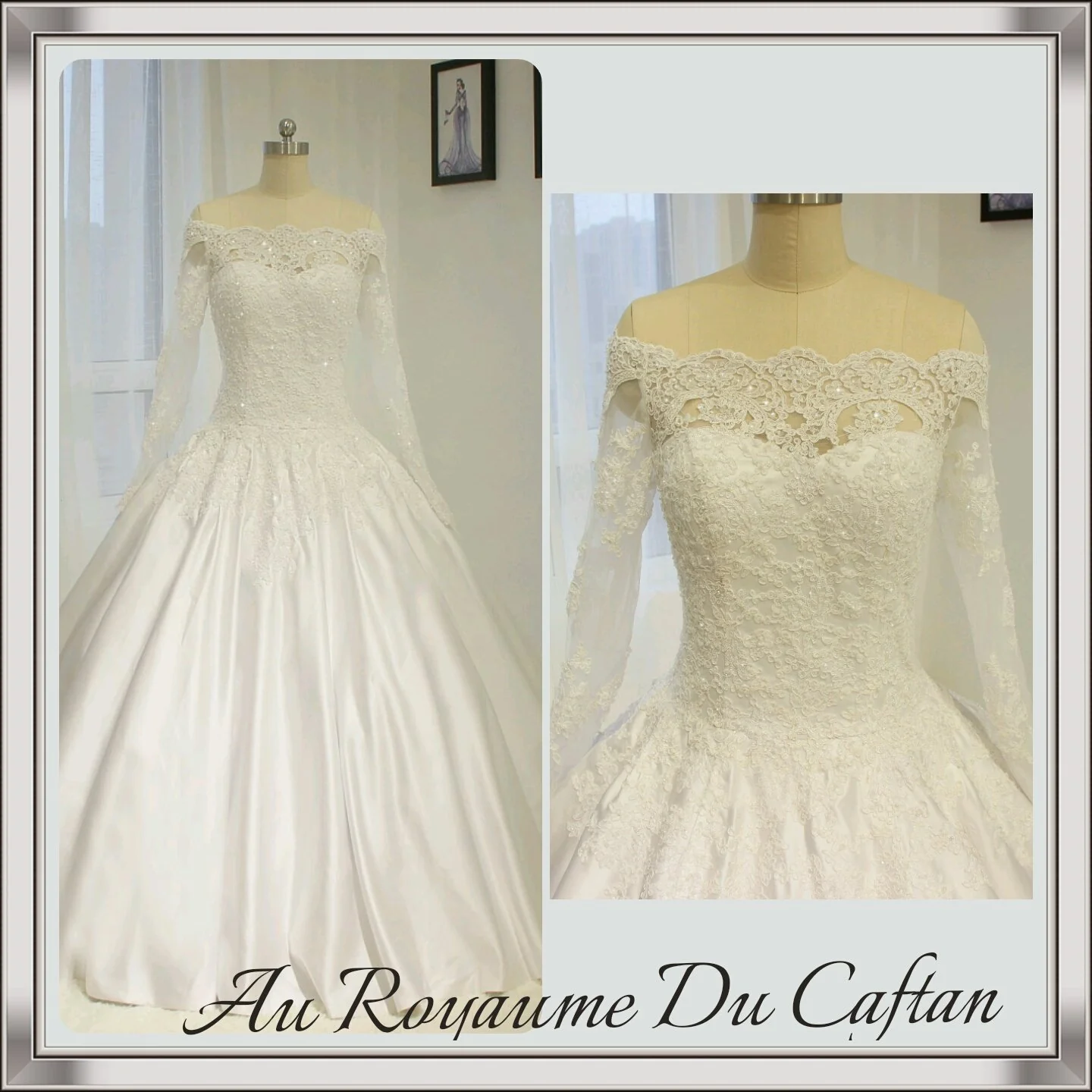 Robe de mariée proposée en sur mesure soit en couleur blanche ou ivoire Avec dentelle française et perlage integré fait main Le jupon est en satin duchesse satinée haute qualité Veuillez nous laisser vos mesures lors de la commande dans la rubrique message