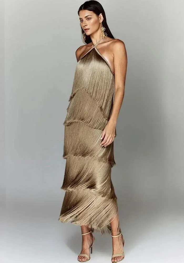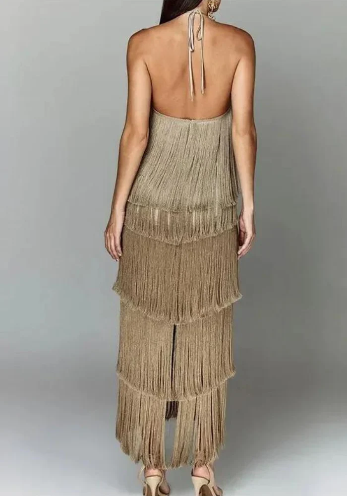 Brillez de mille feux avec notre robe de soirée à franges