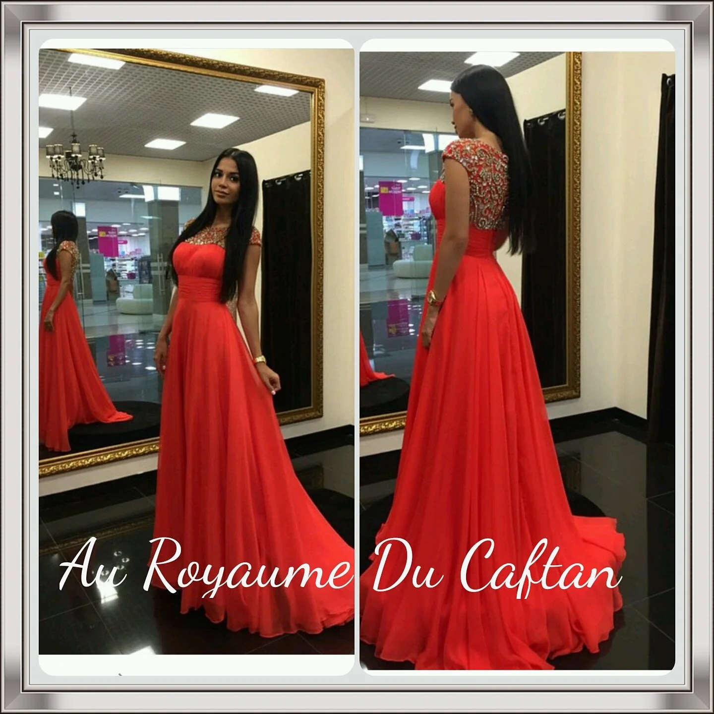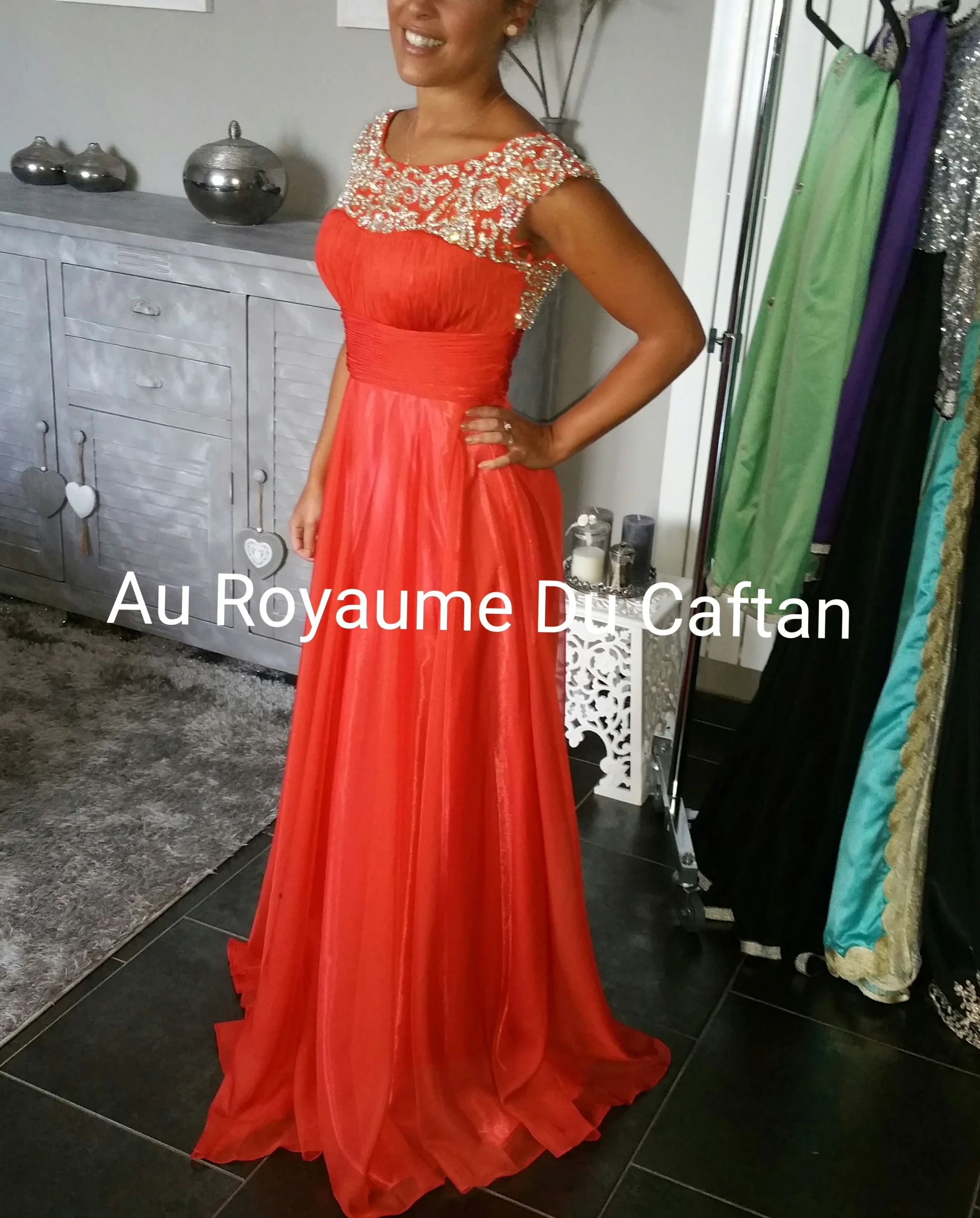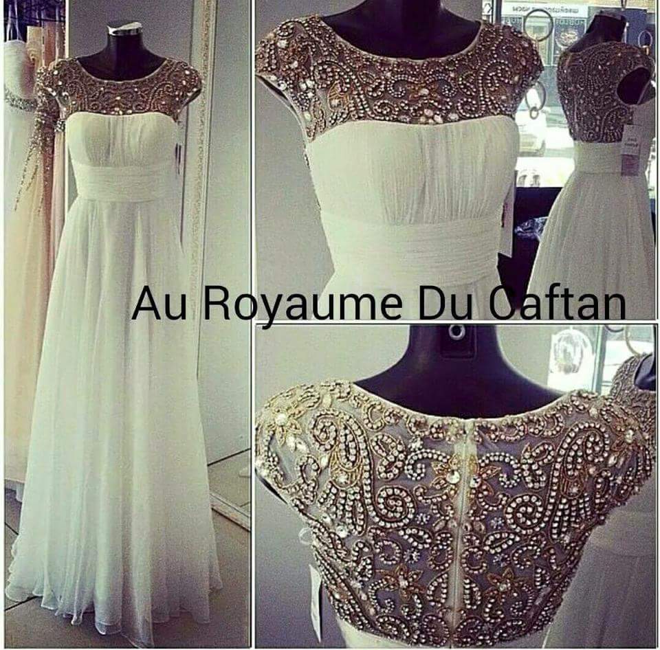 Robe de soirée proposée en plusieurs couleurs Ornée de plusieurs devant et derrière Delai de confection 25 jours Laissez nous lors de la commande dans la rubrique message votre taille et la couleur voulue
