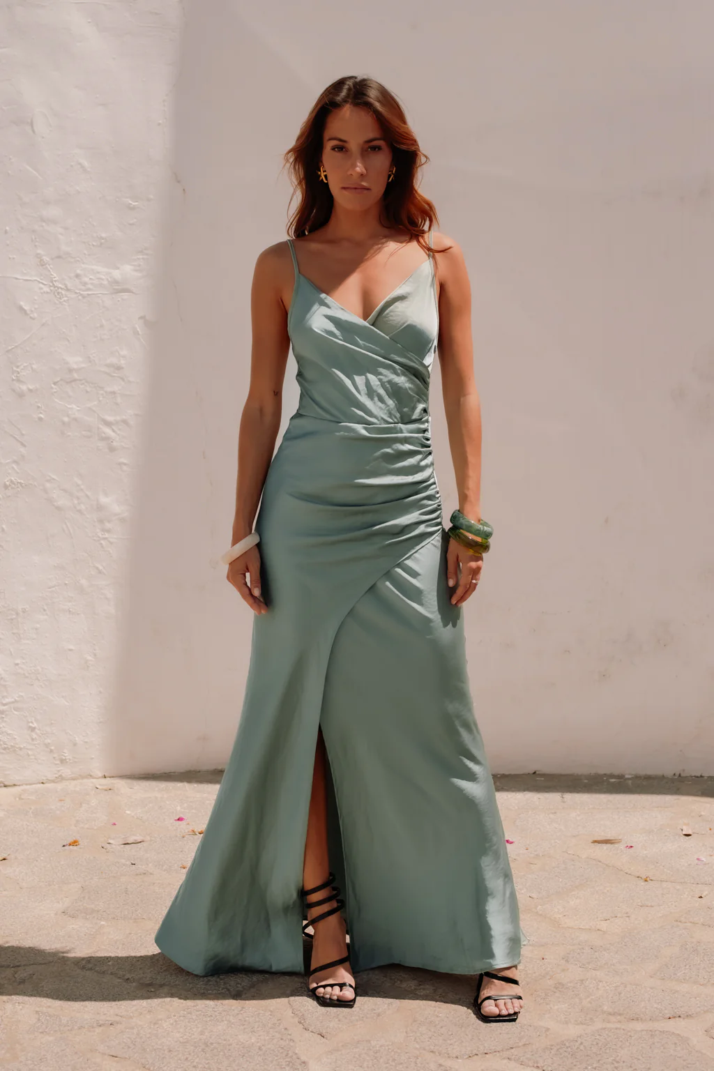 Fluide, sophistiquée et envoûtante, la robe Délicatesse incarne le parfait équilibre entre charme et raffinement. Avec son décolleté en V cache-cœur et ses fines bretelles réglables, elle sublime la silhouette avec élégance. Son drapé subtil sur le côté gauche accentue sa coupe ajustée, tandis que sa fente avant discrète apporte une touche de sensualité. Confectionnée dans un satin terracotta, elle assure une allure gracieuse et captivante, idéale pour toutes les occasions spéciales.
