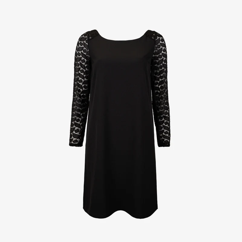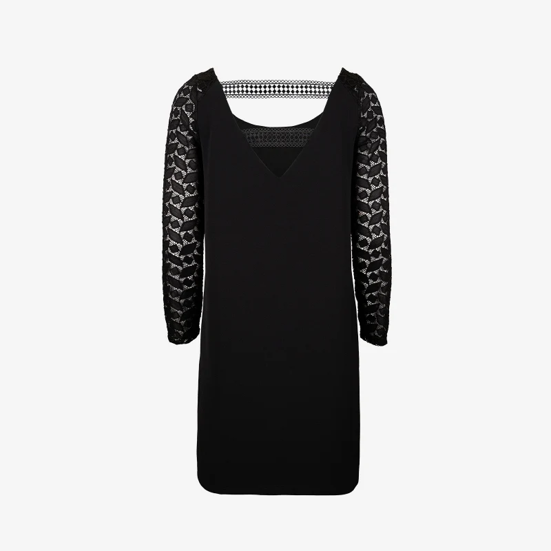 L’allure sublimée, devinée à travers des jeux de dentelle… Dans un noir profond, la transparence laisse libre cours au corps, prenant vie au gré de ses mouvements. Guide des tailles Ouvrir le guide des tailles Description Robe manches longues en crêpe légerForme droite légèrement évaséeEncolure rondeManches en guipure stretch2 pinces poitrineDécoupe Dos en V avec […]