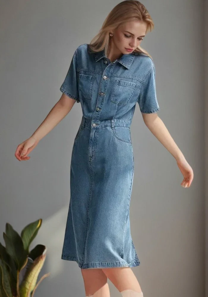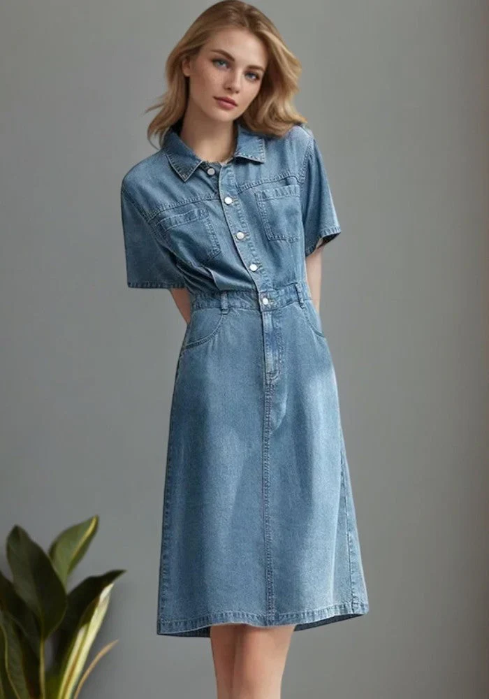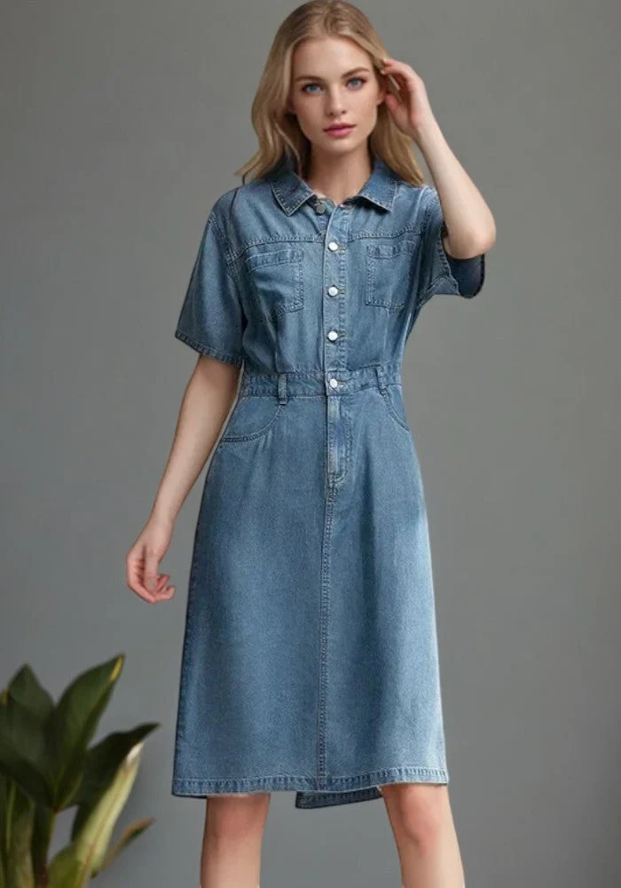 Cette saison, laissez-vous séduire par notre robe droite en jean denim, une pièce phare qui allie style et confort à la perfection.