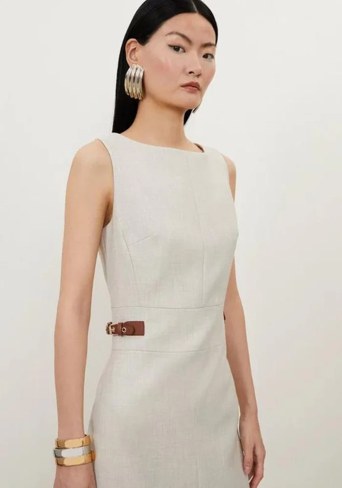 Cette pièce délicate offre un équilibre parfait entre confort et style. Le tissu en polyester de qualité supérieure assure une tenue impeccable tout au long de la journée, tandis que la fente avant centrée révèle juste ce qu’il faut de jambe pour une allure à la fois professionnelle et sensuelle. Son dos se ferme par une fermeture zippée invisible, garantissant une silhouette lisse et épurée. Les boucles décoratives ajoutent une touche d’originalité, faisant de cette robe un must-have dans votre garde-robe.