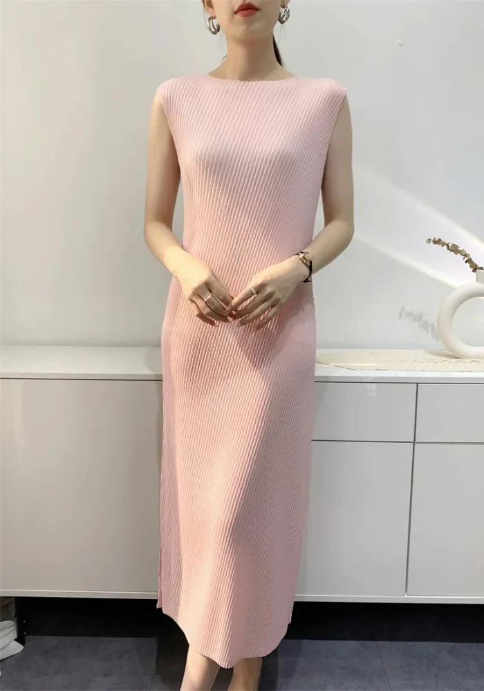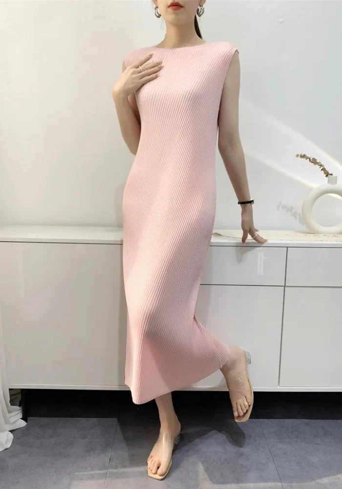 Découvrez le charme discret de notre robe droite rose poudré, un incontournable de votre garde-robe. Avec sa longueur mi-mollet, cette pièce sans manches vous enveloppe dans une élégance tout en simplicité.
