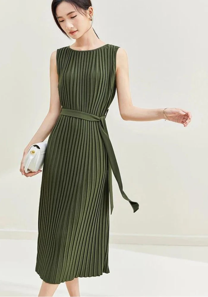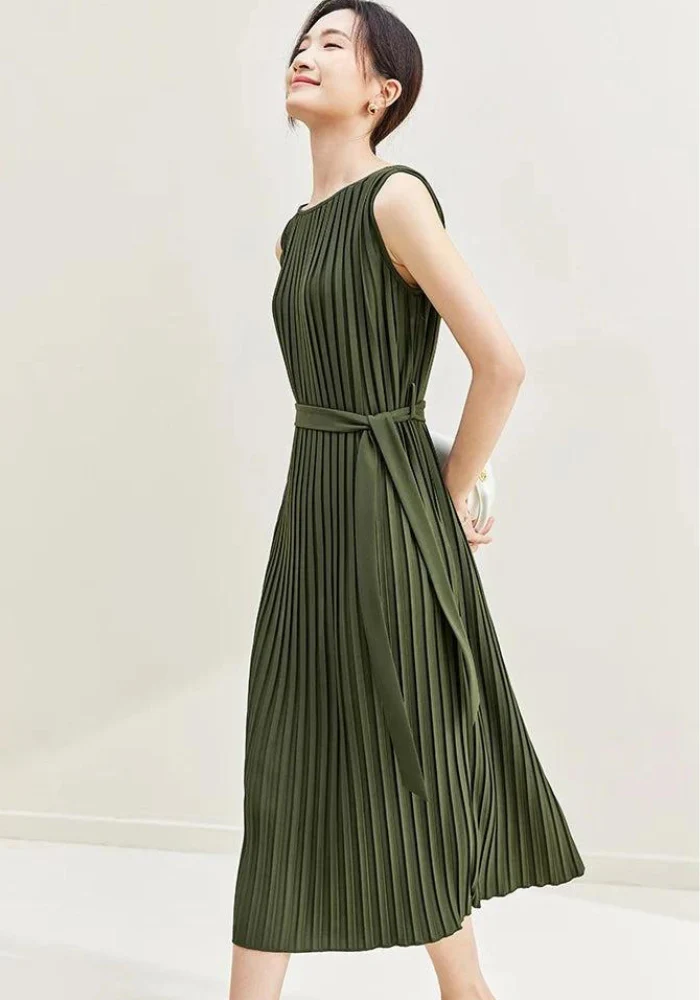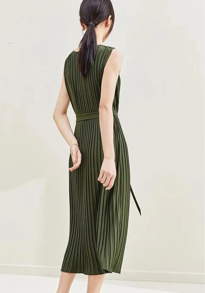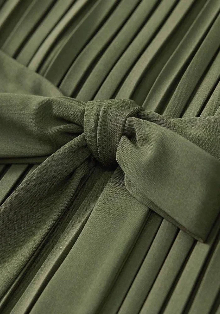 Découvrez la robe verte midi plissée, élégance et confort au rendez-vous