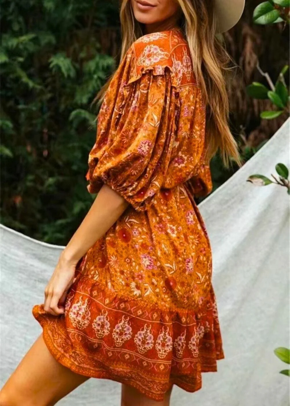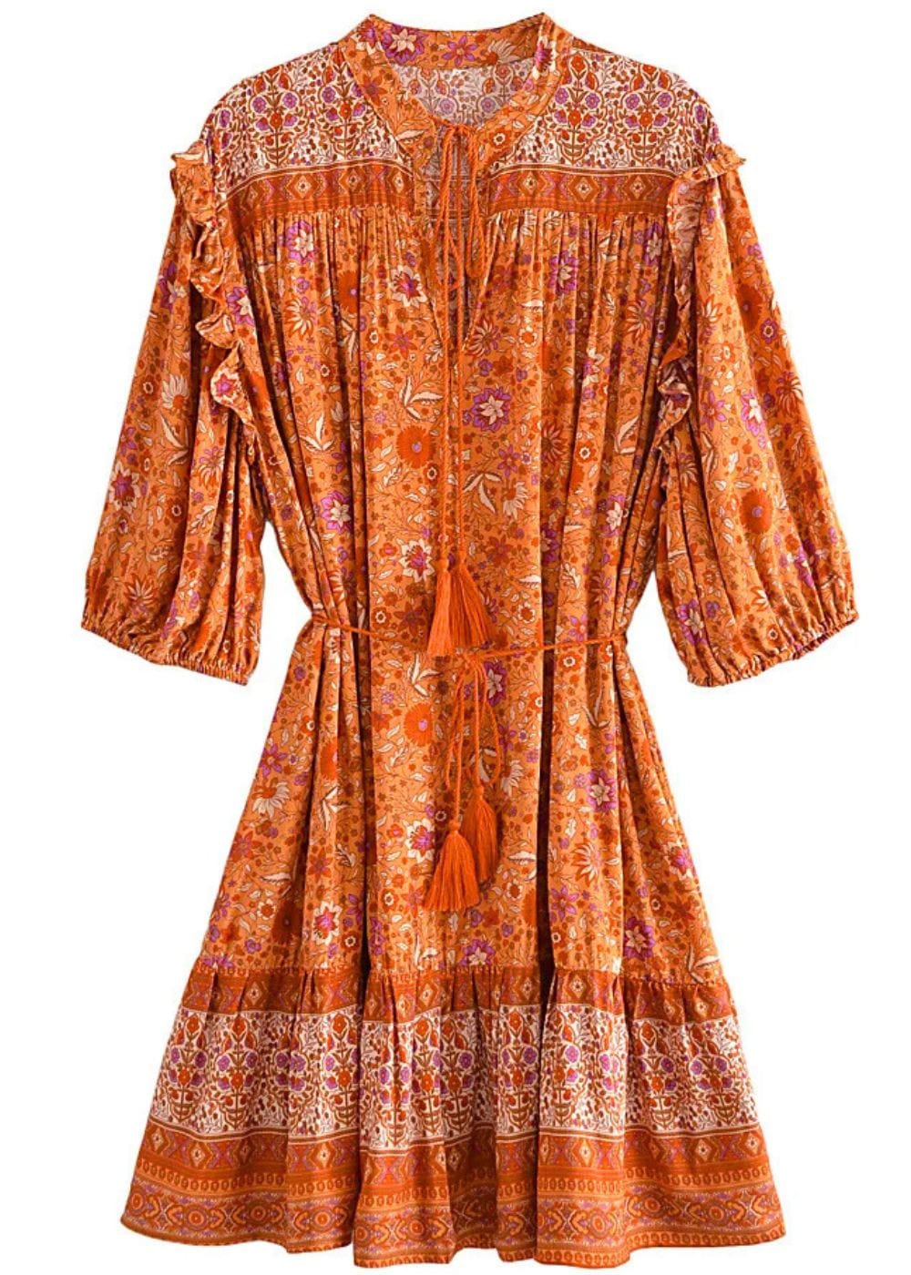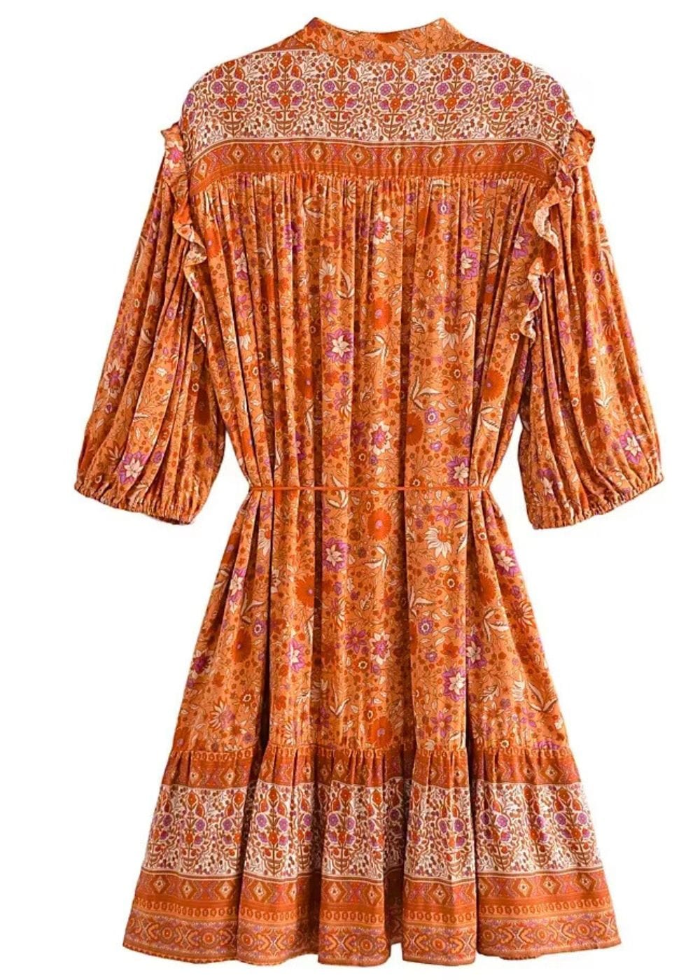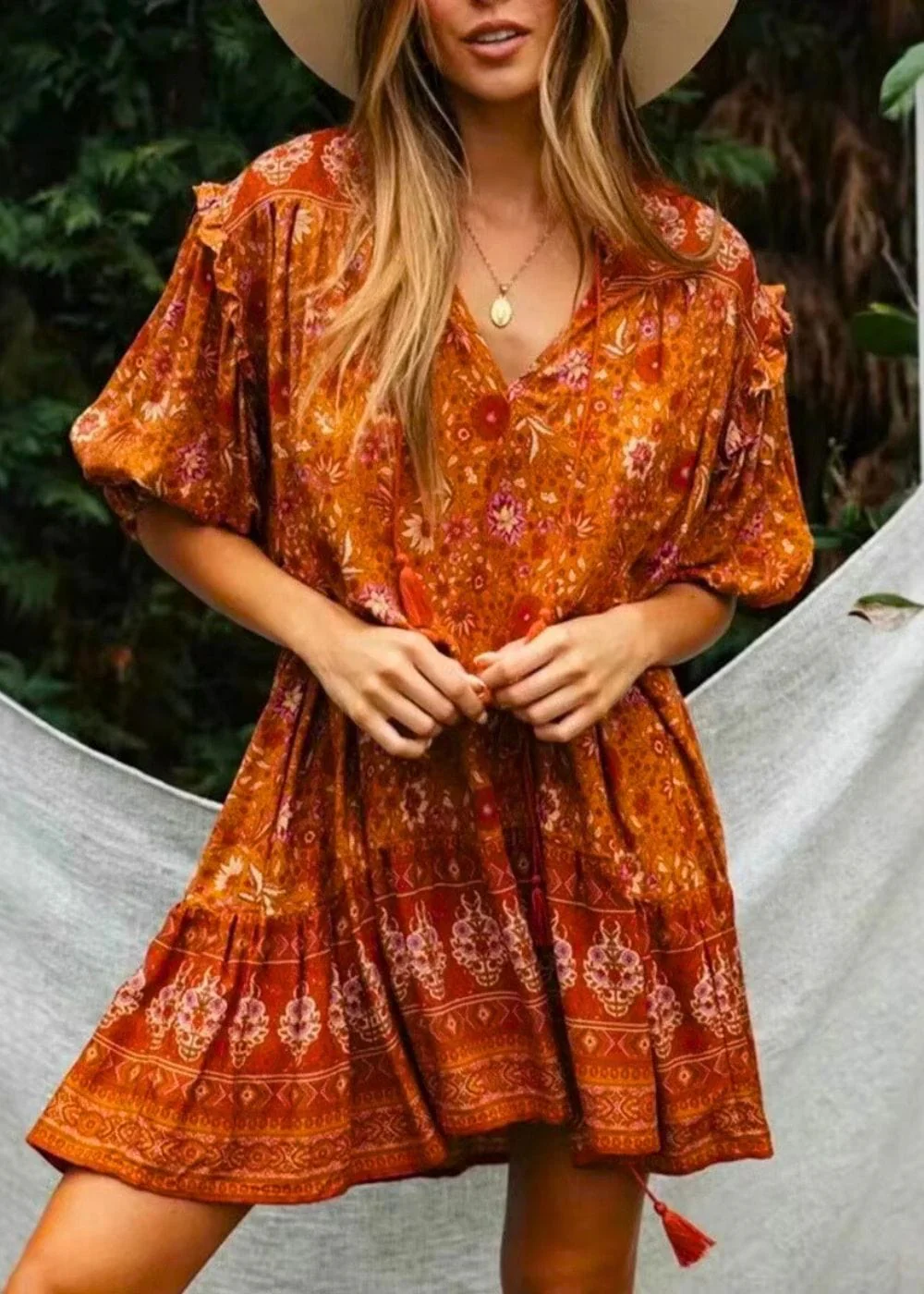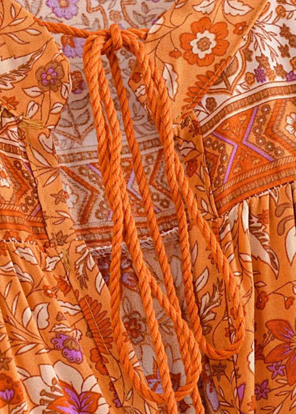 Évoque pleinement la douceur des journées ensoleillées avec cette robe fleurie terracotta. Son tissu en coton léger caresse la peau, offrant une sensation de fraîcheur et de confort absolu. Son imprimé fleuri éclatant illumine ta silhouette, tandis que sa coupe fluide et son lien ajustable à la taille soulignent tes courbes de la plus belle façon. Son charme bohème, renforcé par des volants délicats, ne laisse personne indifférent.