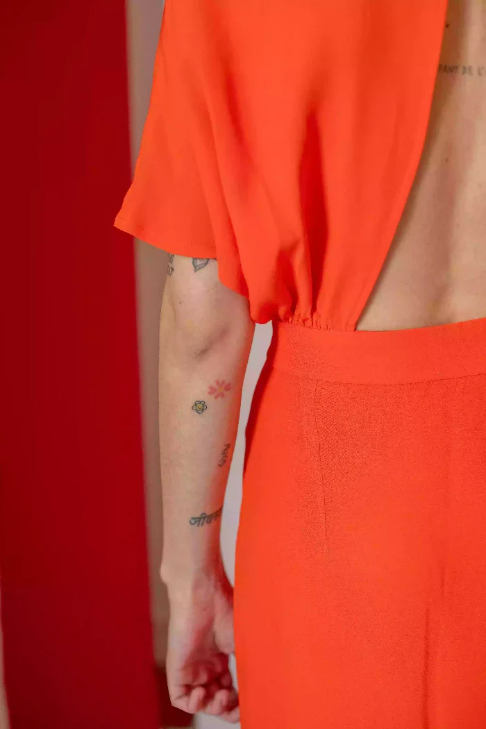 Fabriqué en France 300€ Description Robe portefeuille cintrée taille, manches chauve souris, jupe crayon avec fente côté mi-cuisse et dos triangle ouvert Matière principale : crèpe polyester fluideRobe non doublée pour garder la fluidité du tissuCeinture prise en fourreau pour marquer la taille et 3 petits boutons dorés côté pour fermer la robeLongueur de la […]