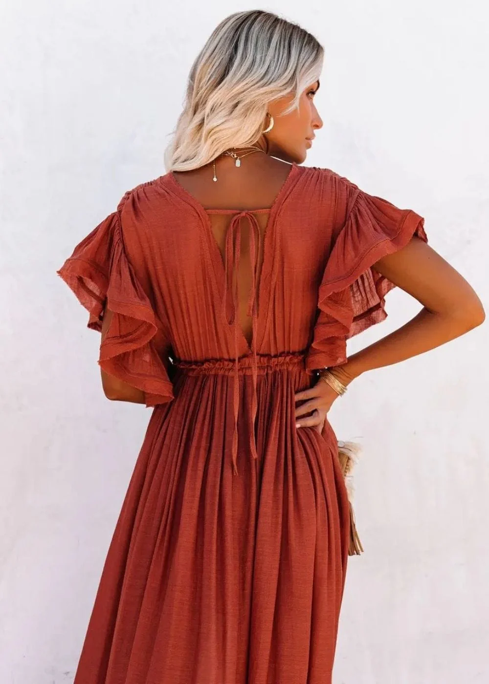 Tu aimes ce style bohème chic ? Découvre aussi notre robe longue fluide terracotta pour une allure raffinée. Pour plus d’inspirations, explore notre collection de robes longues terracotta ainsi que notre sélection exclusive de robes terracotta !