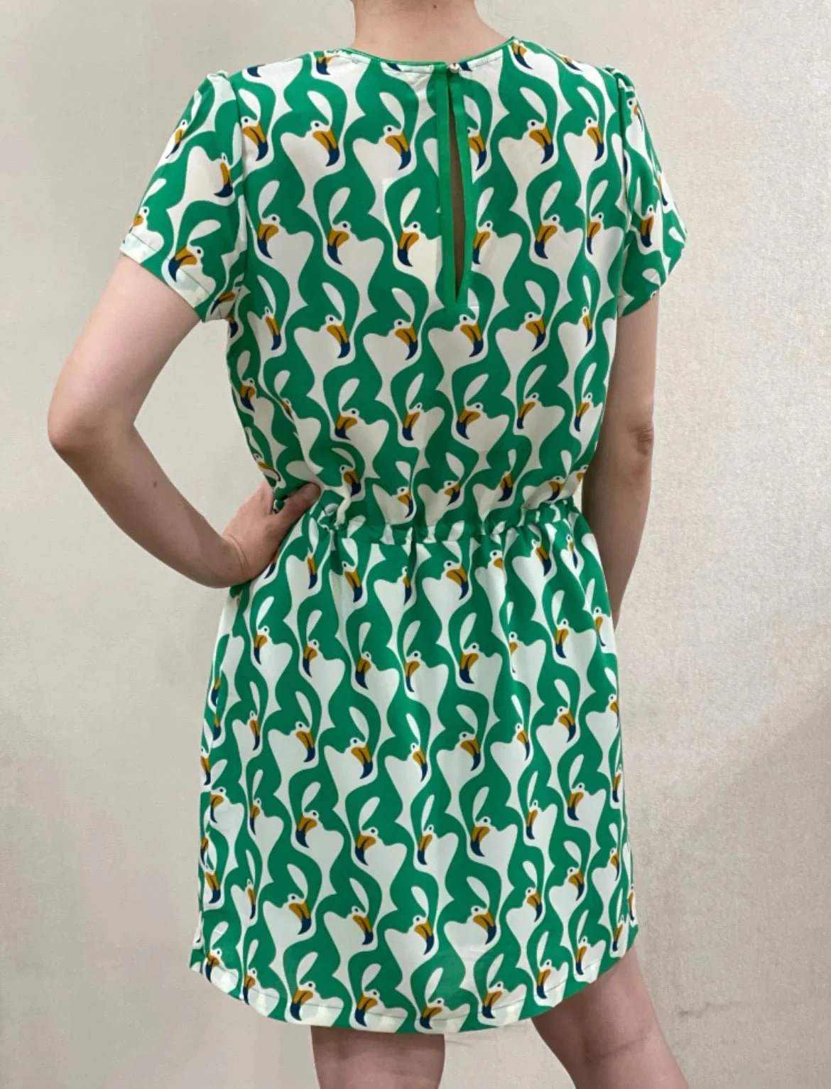 Découvrez notre sublime robe midi imprimée vert ornée de motifs pélicans, une pièce unique qui allie simplicité et élégance. Cette robe à la coupe droite flatte toutes les silhouettes tout en offrant un confort inégalé. Son col en V et sa fermeture boutonnée jusqu’en bas apportent une touche raffinée et contemporaine, idéale pour toutes les occasions.