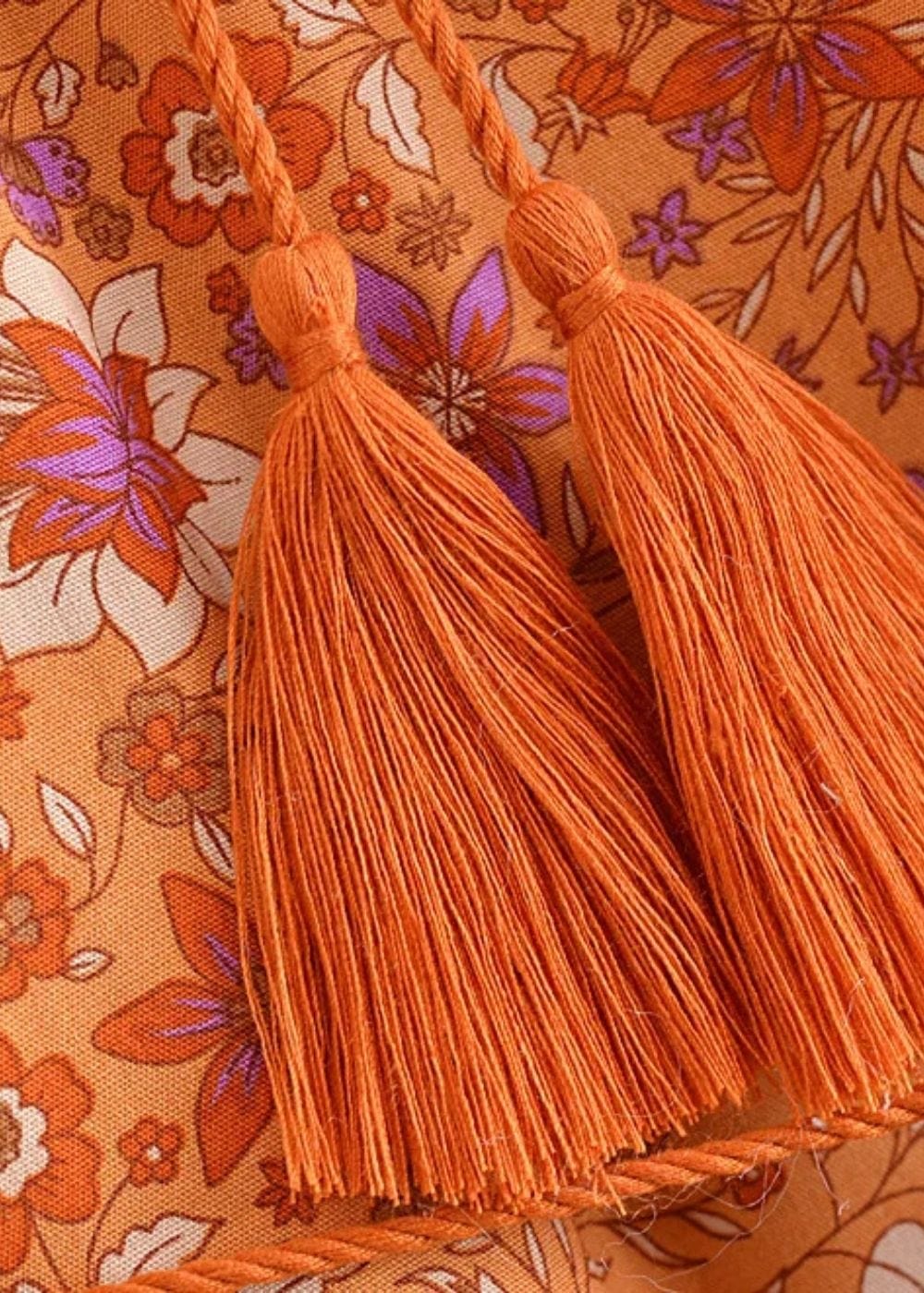 Cette robe a un vrai air de vacances. Son motif terracotta, rappelant les couleurs chaudes du sud, te transporte instantanément sous le soleil de la Méditerranée. Elle est une invitation au voyage, à la détente et à l’élégance décontractée.