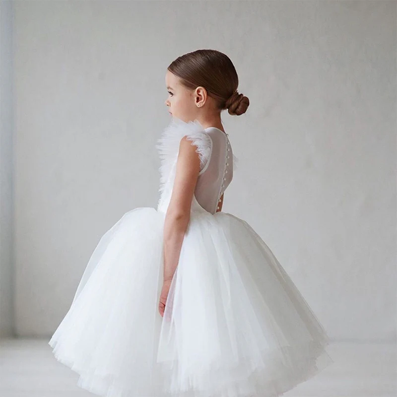 Robe Princesse blanche raffinée pour Fillette à porter pour une événement spécial aux beaux jours.