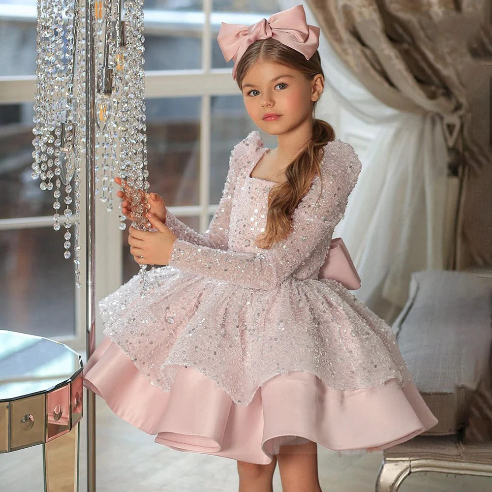 Cette Robe rose en sequins produira un effet extraordinaire auprès des invités. Un nœud majestueux au dos sublime le look bonbon de cette Robe.