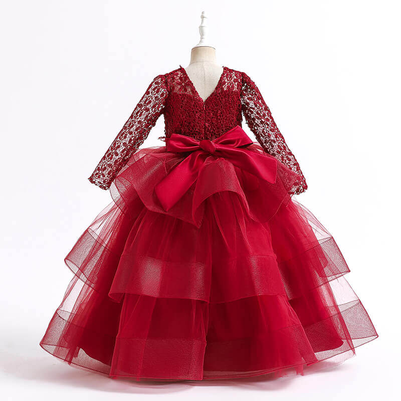 La robe princesse fille noël a une longueur qui arrive jusqu’aux chevilles, ce qui crée une silhouette élégante et sophistiquée pour la jeune fille. Son corsage est en dentelle rouge, créant un effet visuel élégant et sophistiqué. Le jupon en tulle bouffant ajoute de la profondeur à la robe, créant une silhouette flatteuse pour la jeune fille.