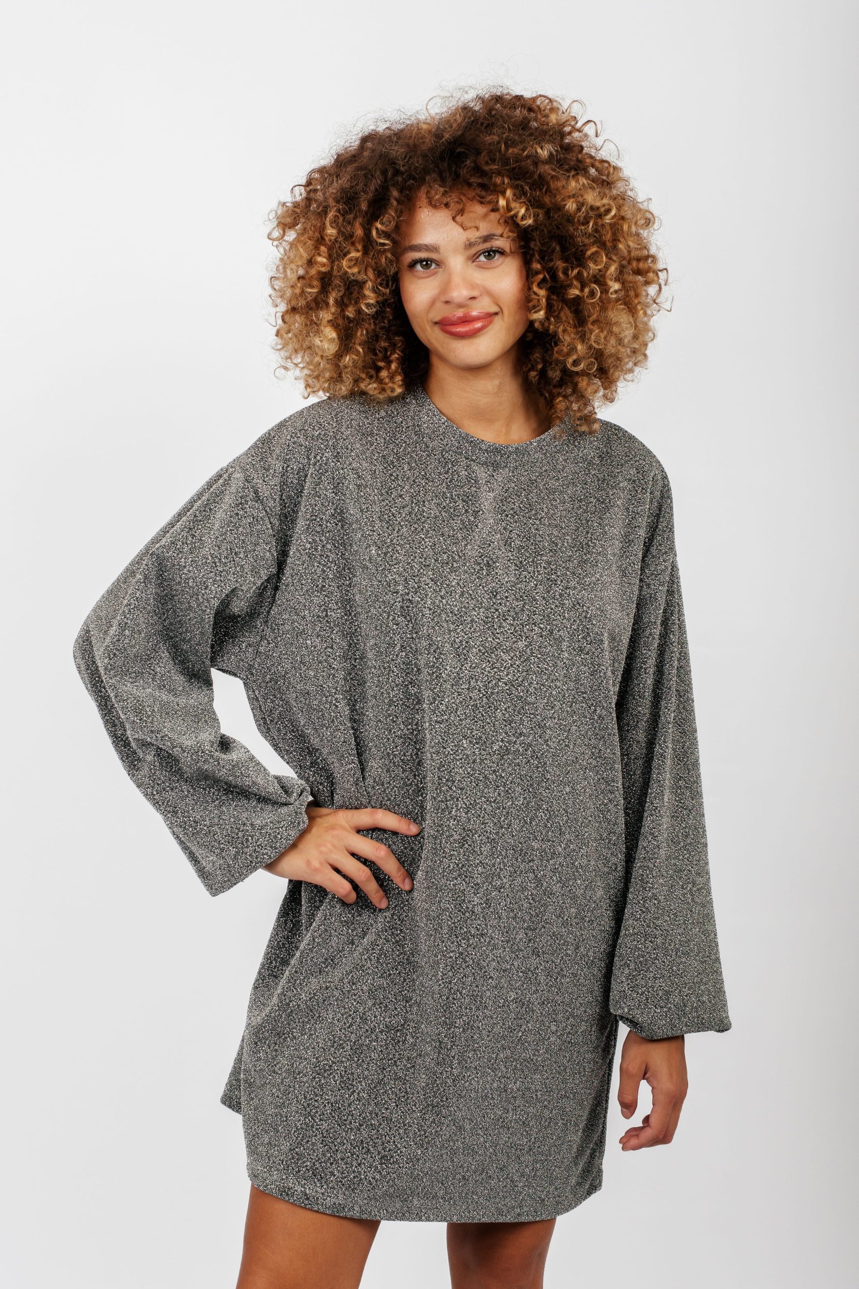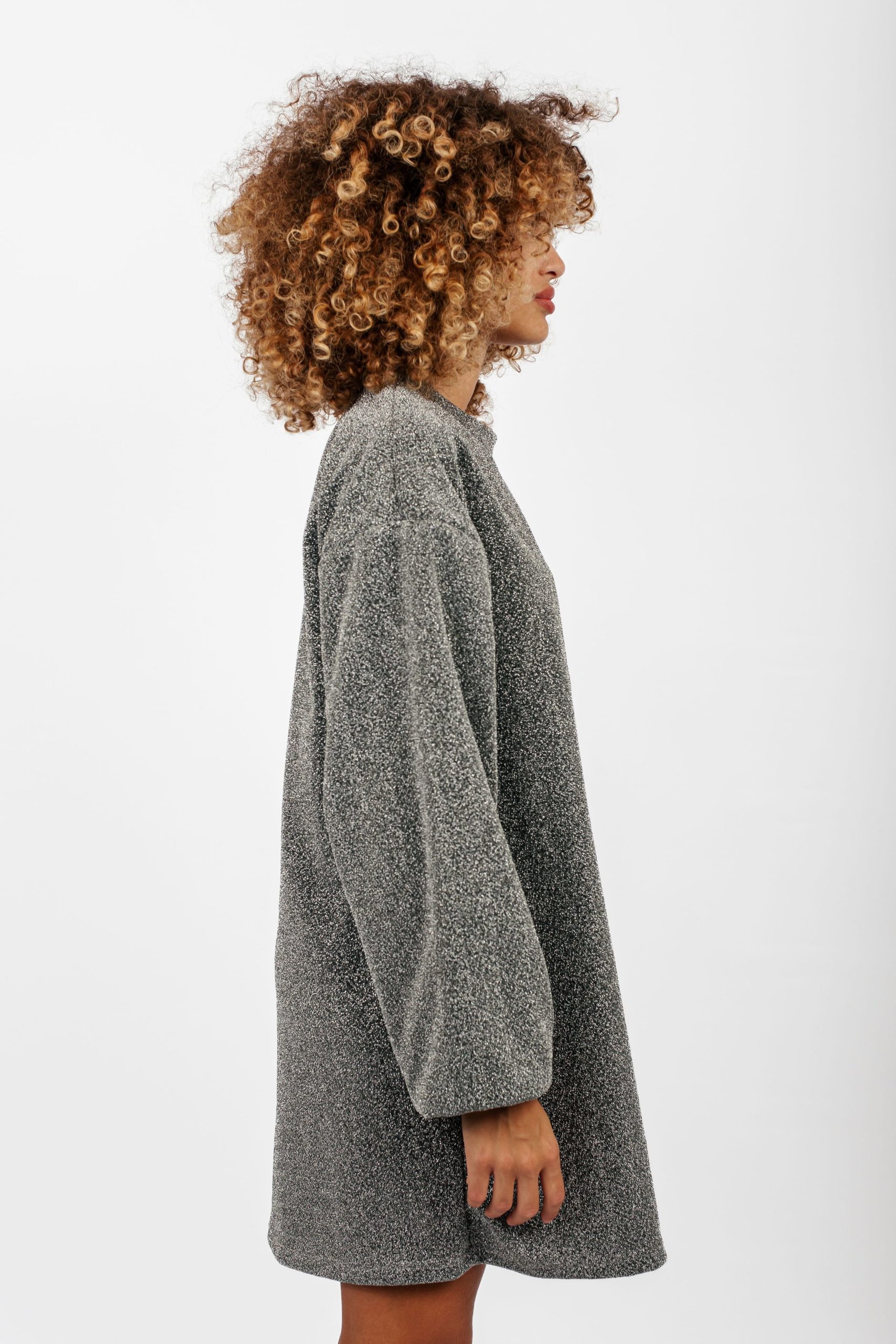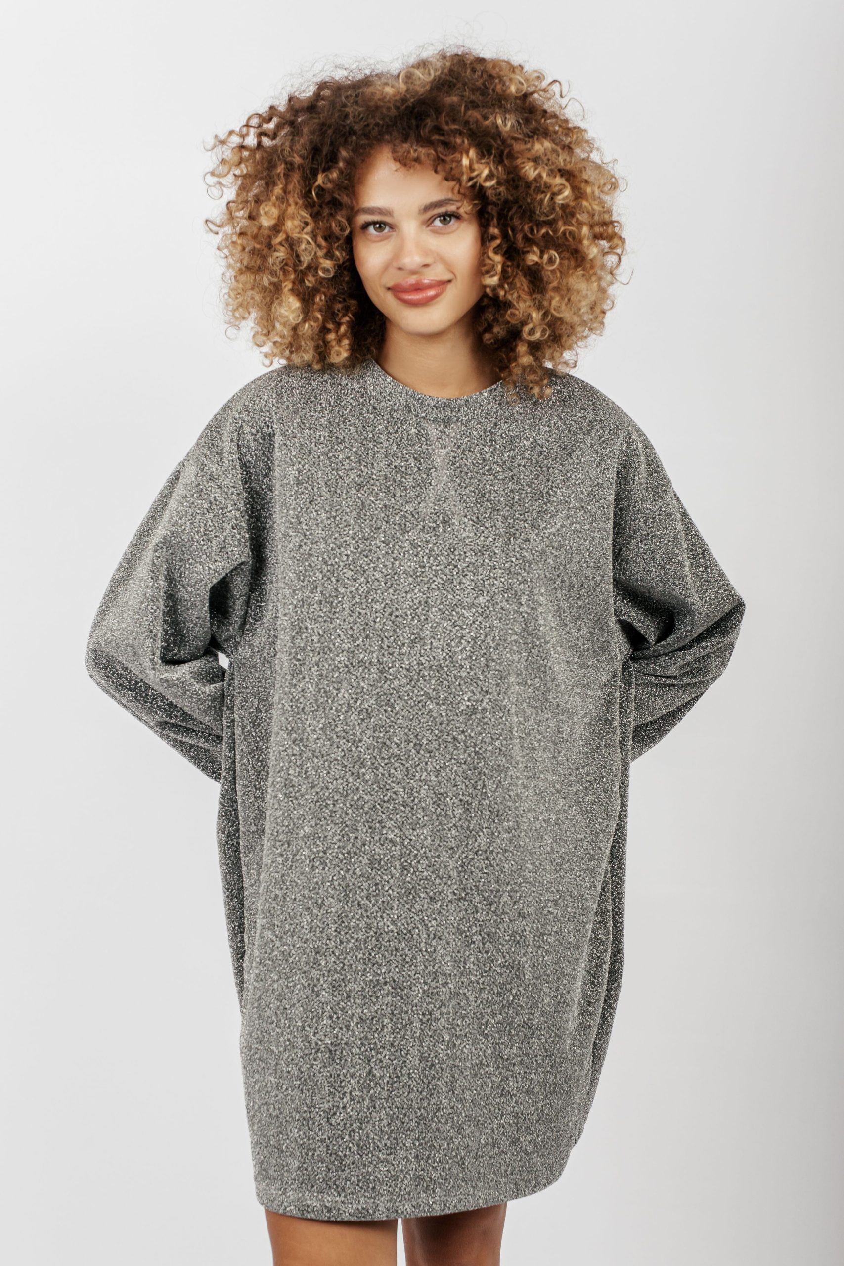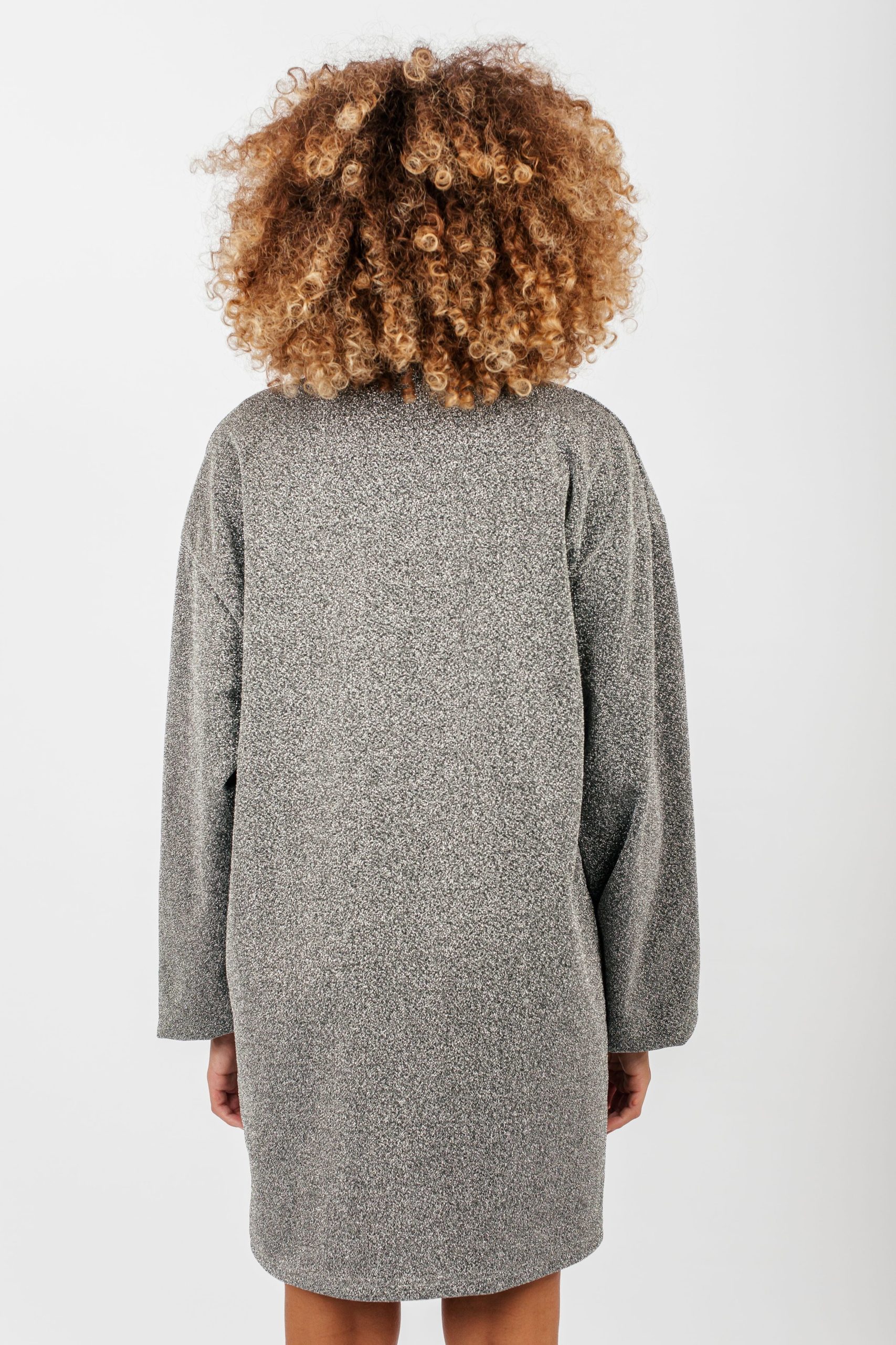 Laissez briller votre glamour décontracté avec notre robe pull Chimere pailletée en argent. Le mariage parfait entre confort et éclat. Son col rond classique et ses manches légèrement ballon, rehaussées d’élastiques subtils aux poignets, ajoutent une touche de féminité moderne à cette pièce polyvalente. Que ce soit pour une soirée entre amis ou une escapade en ville, cette robe vous enveloppe dans un éclat argenté tout en vous offrant la liberté de mouvement que vous recherchez. Faites tourner les têtes et captez la lumière sous les projecteurs de la mode.