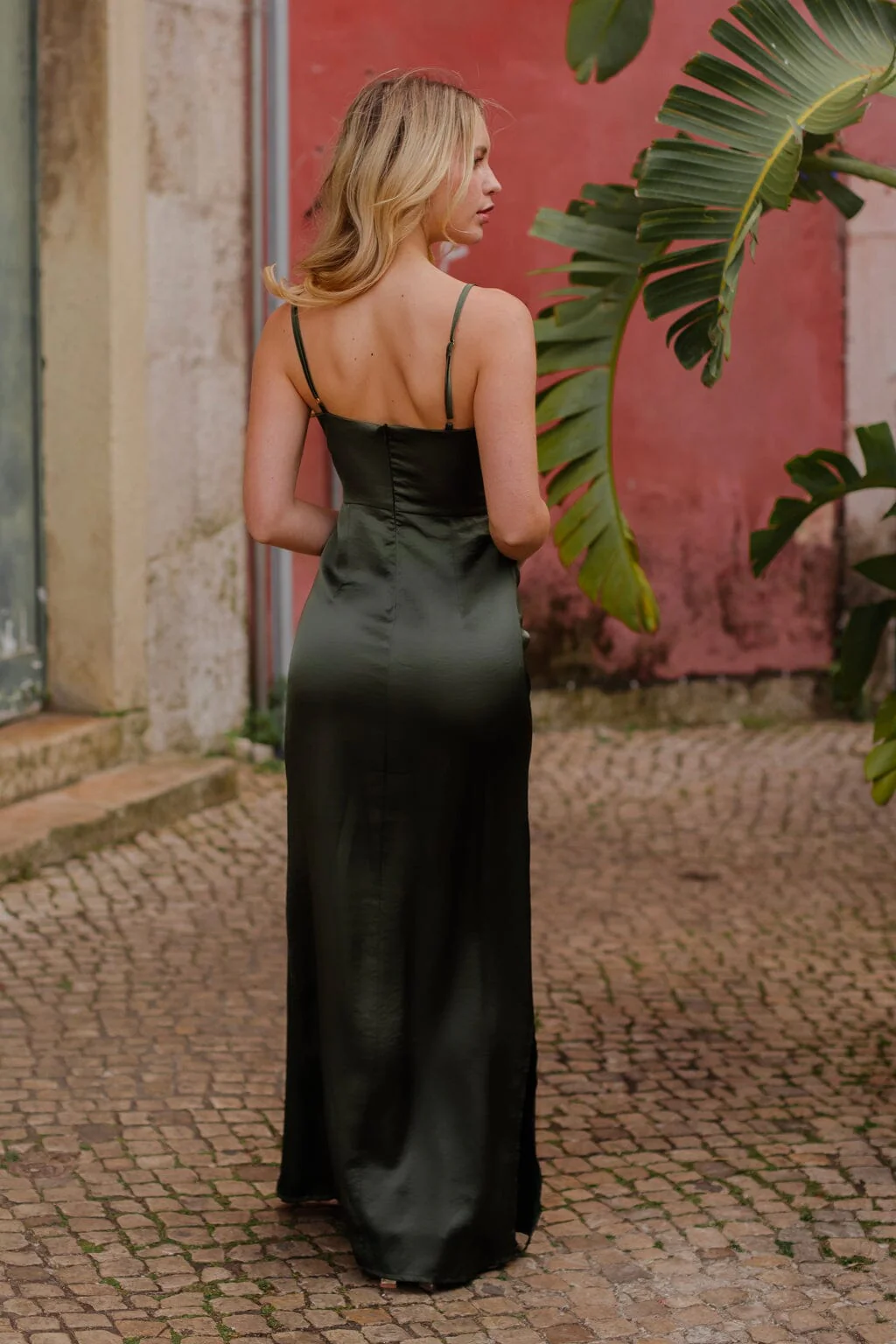 La Robe Saisissante incarne l’élégance et le raffinement, une pièce maîtresse pour vos événements les plus précieux. Teintée d’un kaki profond et chaleureux, cette robe de cérémonie est conçue pour faire une impression mémorable. Ses fines bretelles ajustables complètent délicatement la silhouette, tandis que la découpe audacieuse au niveau du ventre offre un jeu de séduction subtil. Le buste, méticuleusement torsadé sur la poitrine, et les légères fronces sur le devant, au niveau des hanches, sculptent la forme avec grâce, soulignant vos courbes naturelles avec finesse. Le zip dans le dos assure une finition élégante et pratique, facilitant l’enfilage. Parfaite pour des cérémonies ou des soirées où la distinction est de mise, la Robe Saisissante est un gage de beauté et de confiance.