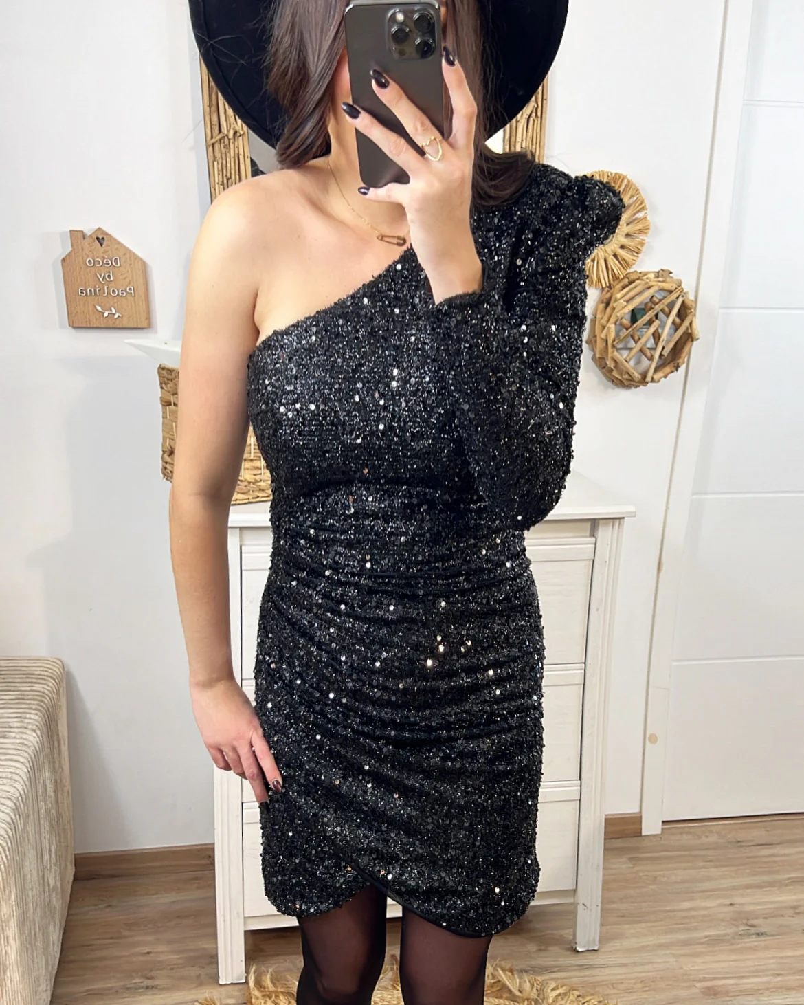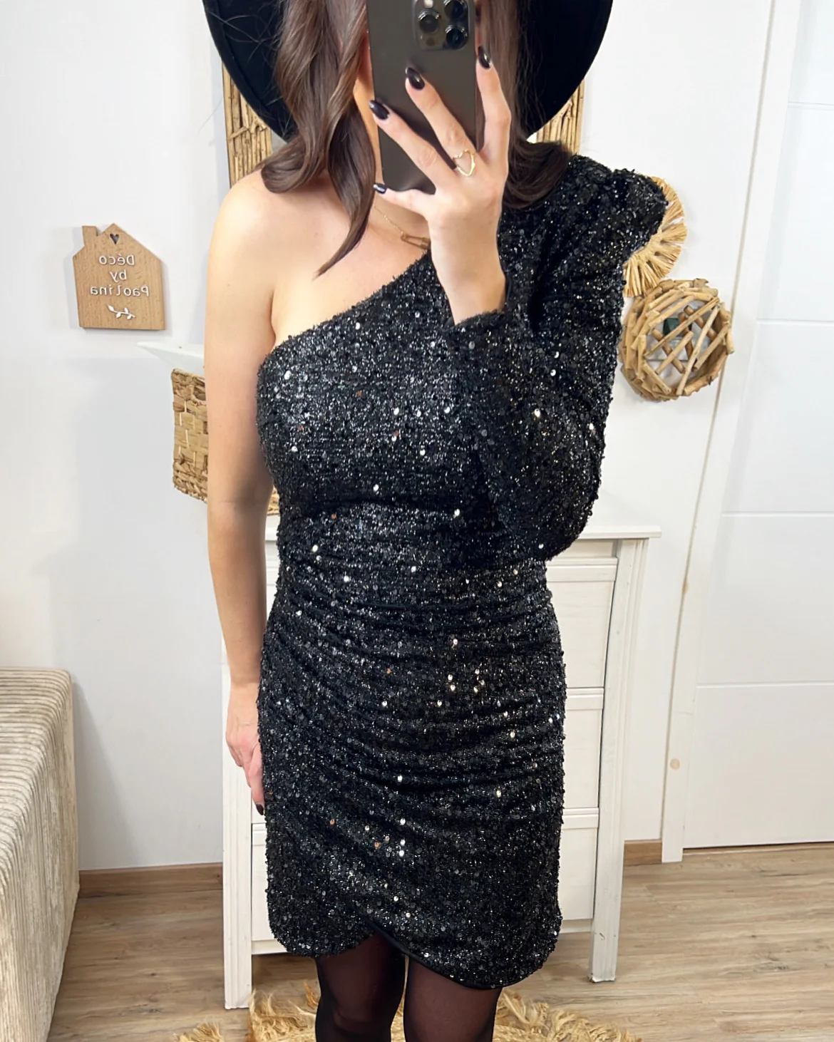 Robe Shine • Manches longues robe à sequins • Non transparente • Le modèle mesure 1M65 et porte une taille S • Composition 100% Polyester • Mode d’expédition : Colissimo avec ou sans signature. • Livraison offerte à partir de 69€ d’achat