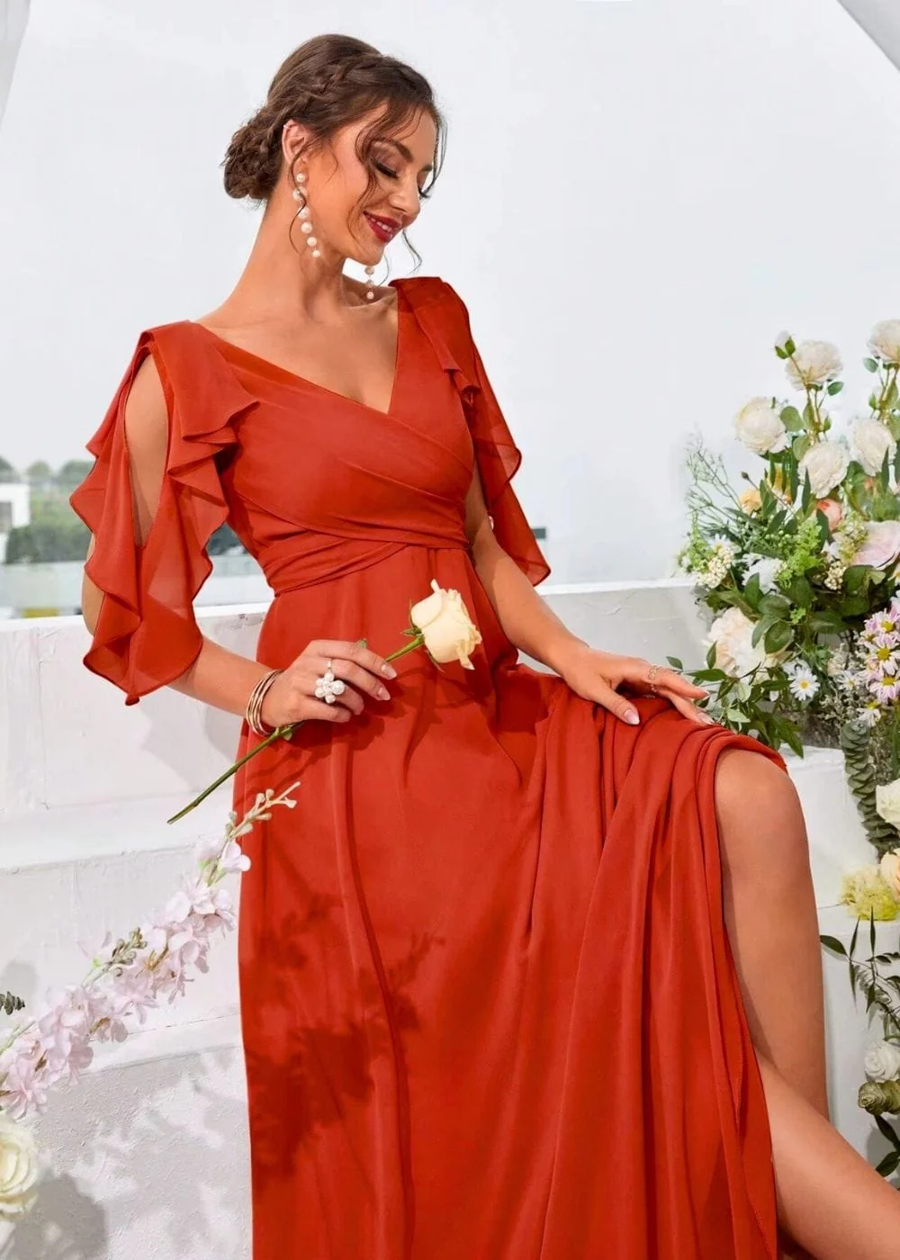 Élégante et envoûtante, cette robe témoin terracotta ne laisse personne indifférent