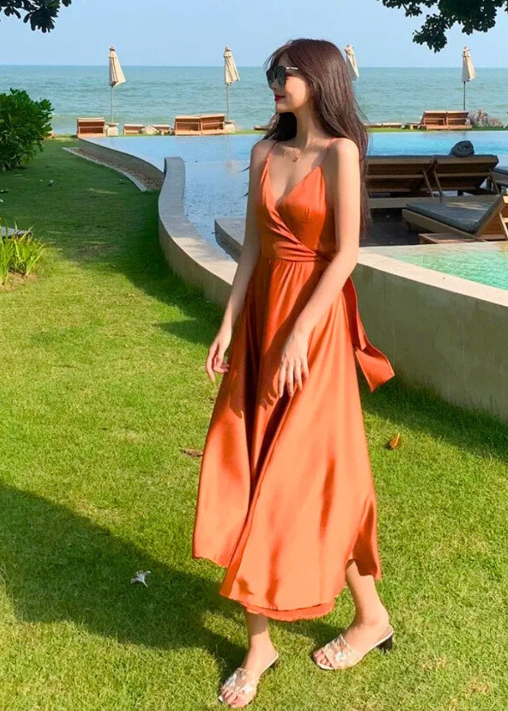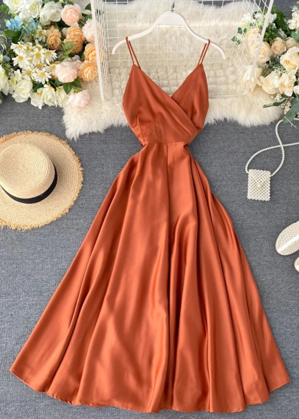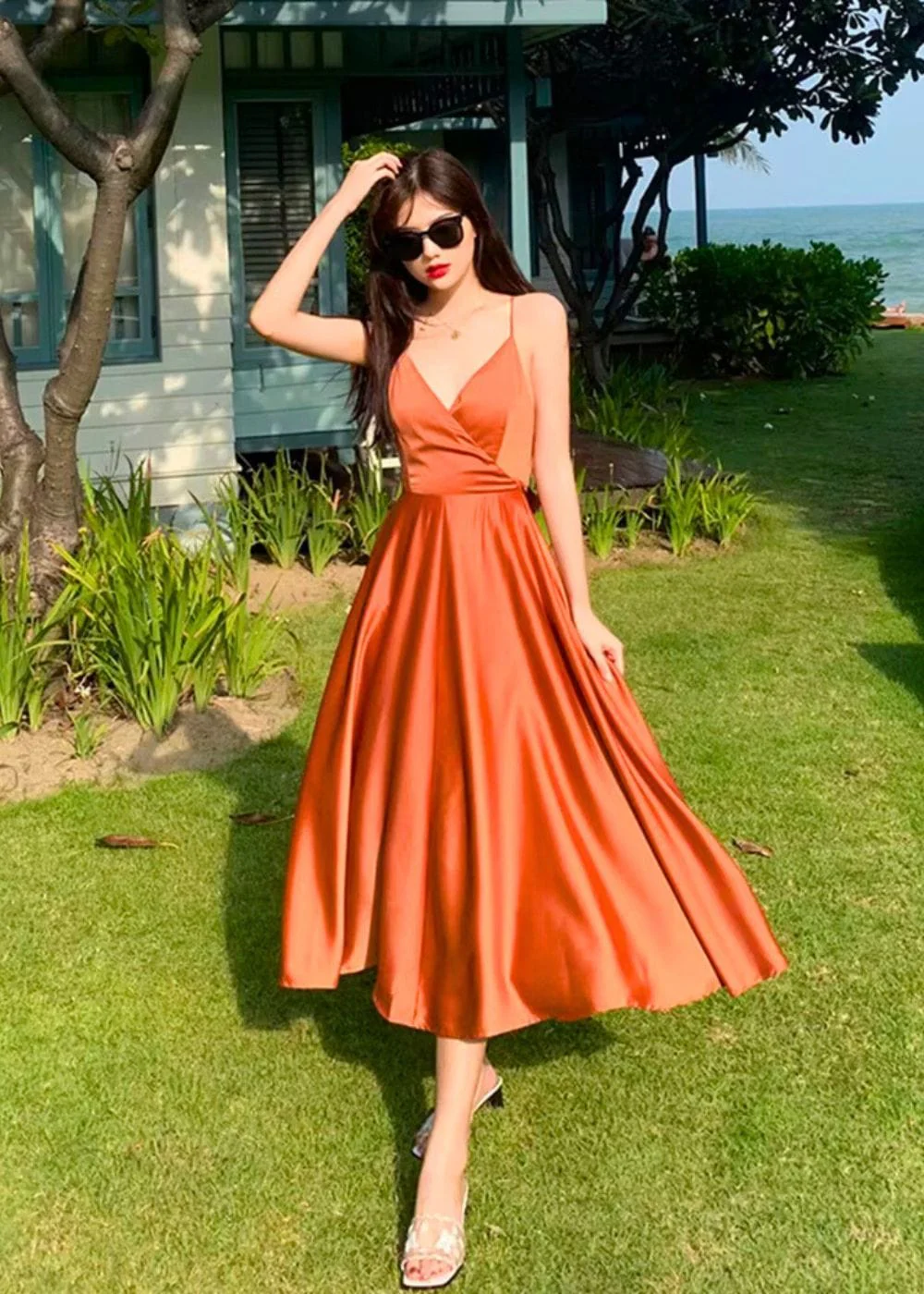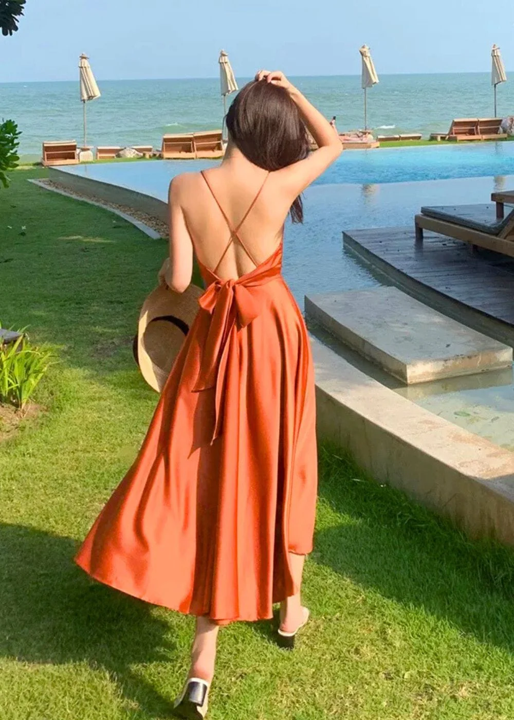 Matière : Satin Couleur : Terracotta lumineuse et chaleureuse Encolure : Décolleté plongeant pour une touche sensuelle Dos : Décolleté avec fines bretelles croisées ajustables Coupe : Cintrée à la taille, jupe fluide mi-longue Détails : Ceinture délicate soulignant la silhouette Longueur : Mi-longue, parfaite pour une allure aérienne et élégante Légère et envoûtante, cette […]