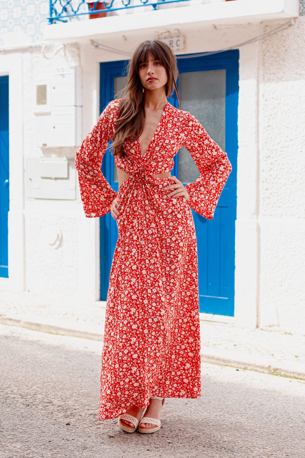La Robe Vérité célèbre la grâce et la beauté dans une harmonie de couleur et de design. Cette robe longue, captivante avec sa découpe élégante dans le dos et ses manches longues pagodes, offre une silhouette fluide et féminine. Le col V s’embellit de détails fleurs délicats à l’avant, ajoutant une touche de raffinement. Habillée d’un rouge profond et ornée de petites fleurs blanches, cette création est une invitation à la séduction et à l’expression de soi, parfaite pour les occasions où vous souhaitez briller avec éclat.