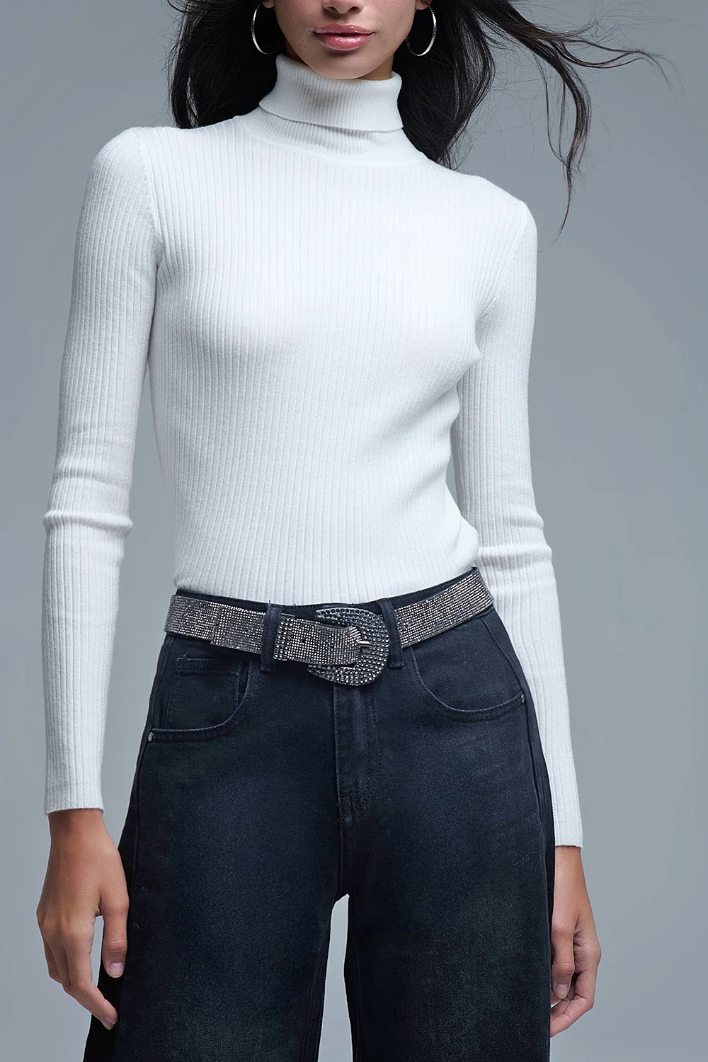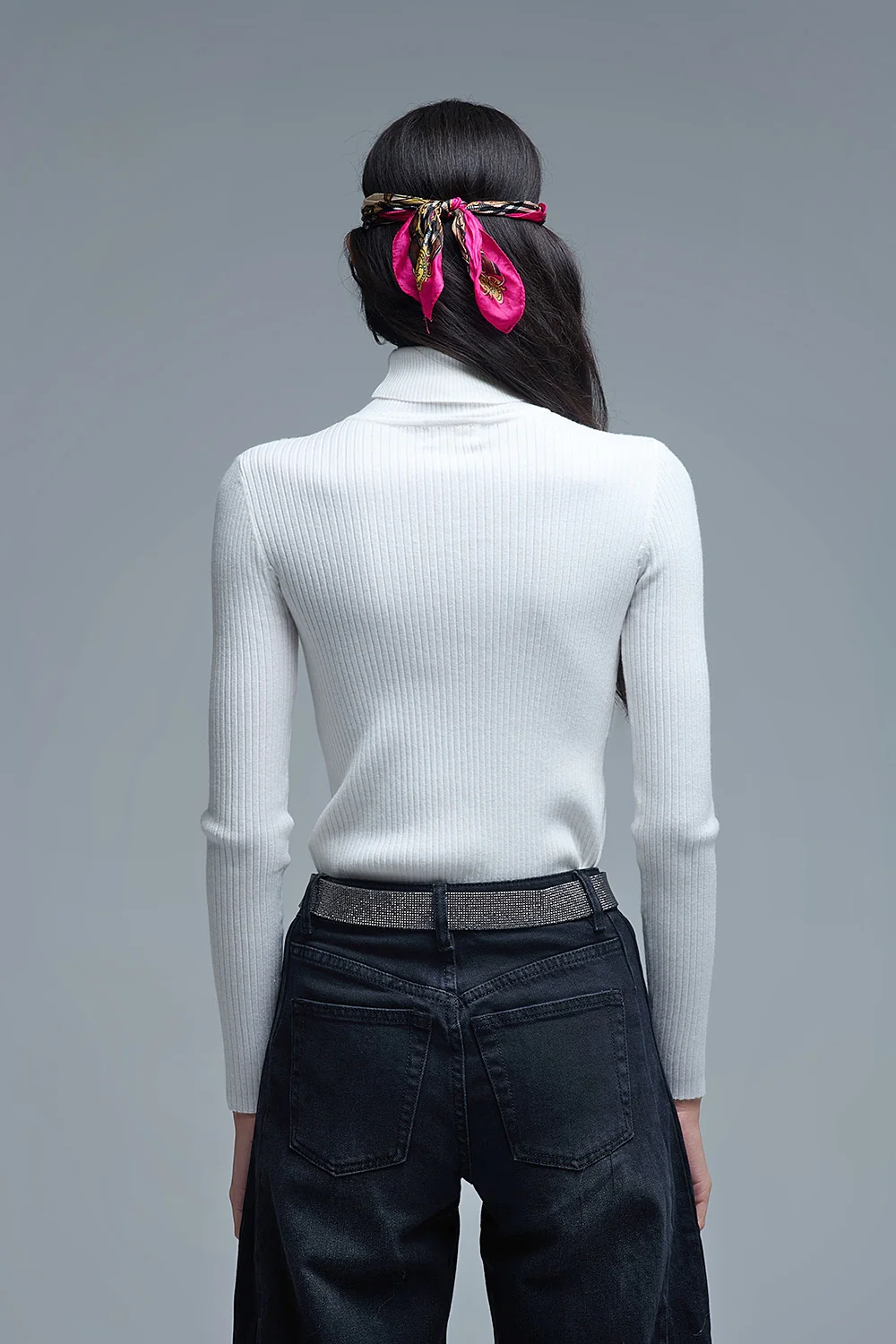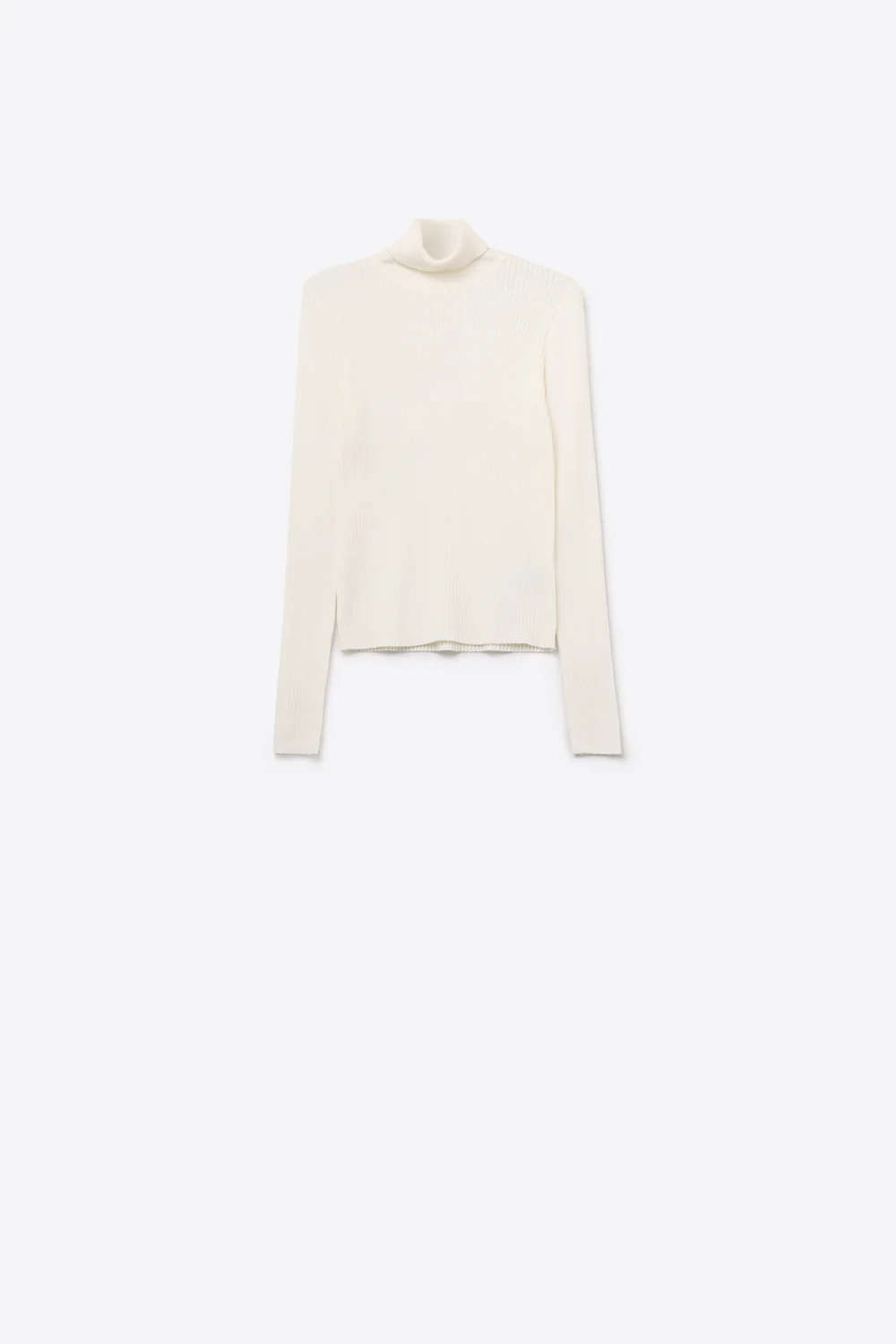 Rolled Turtle Neck Ribbed Sweater in White