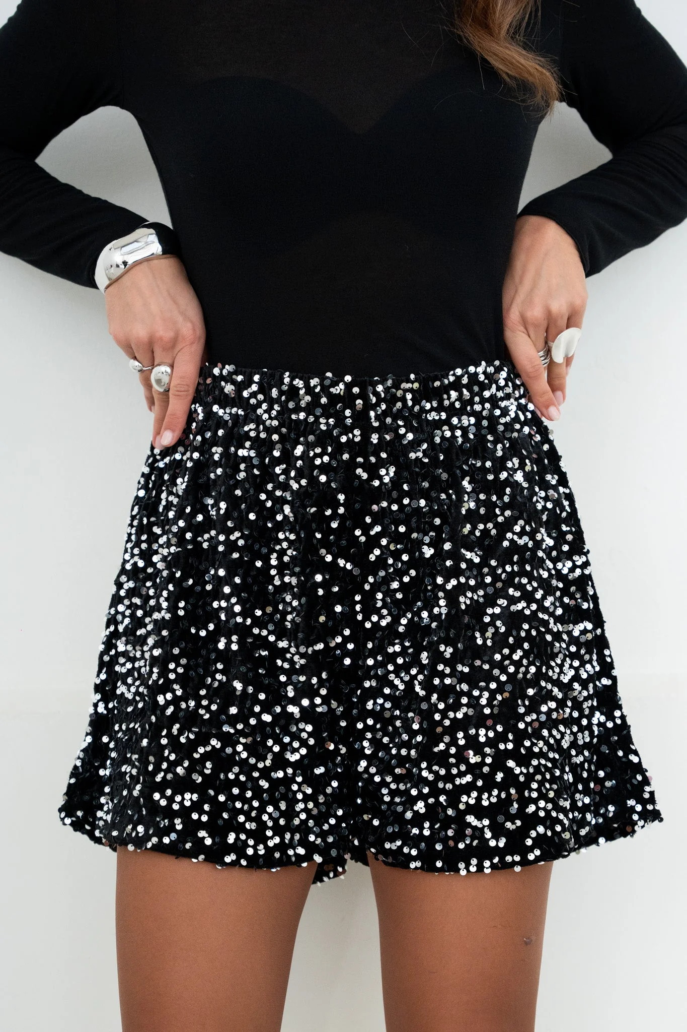 Short à sequins Elastique à la taille Mesures à plat en CM : Tour de taille : S 32 M 34 L 36 Longueur : S 40 M 40 L 40 La mannequin mesure 173cm et porte une taille S.