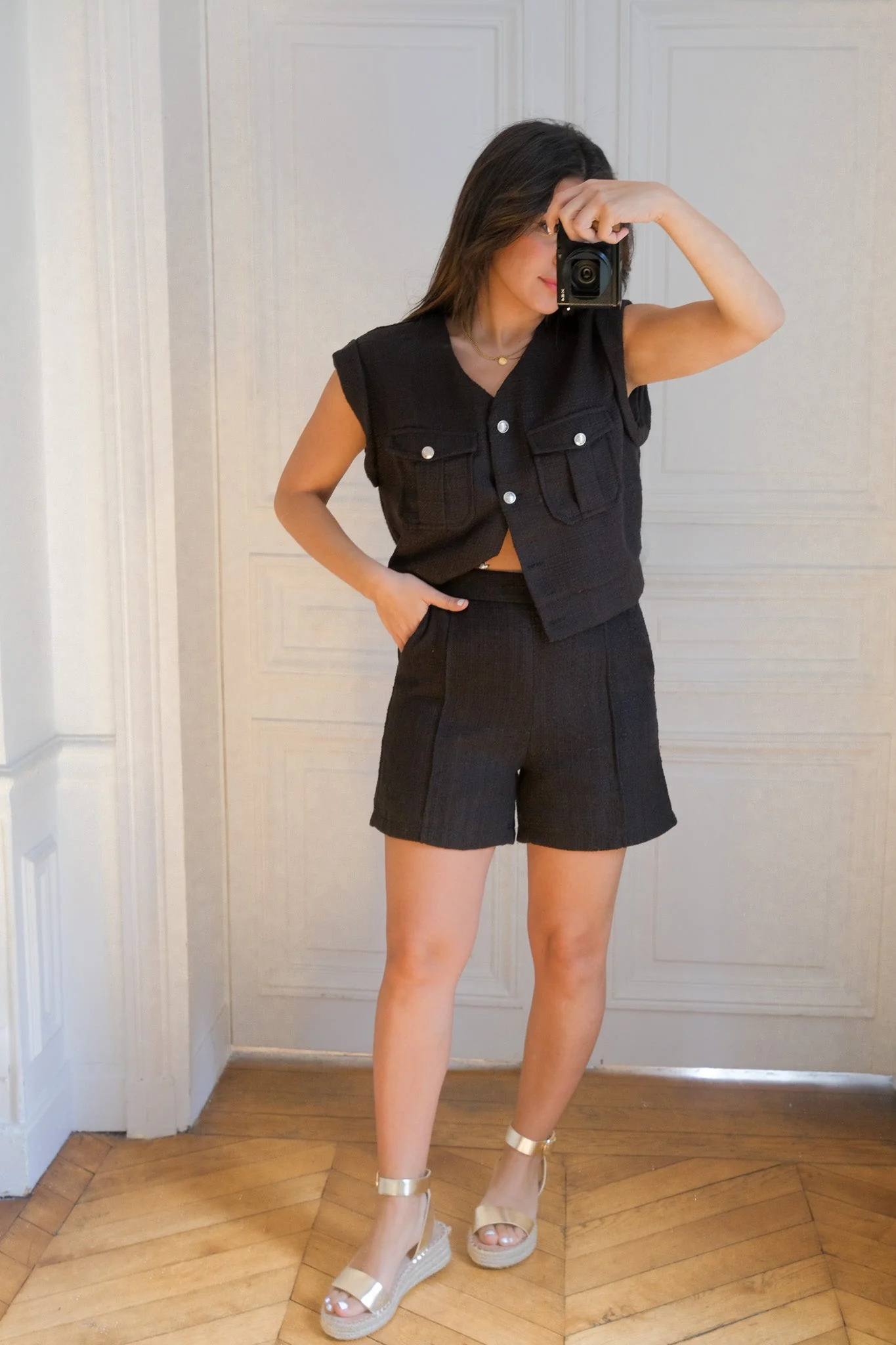 – Short – Poches avant – Bande élastique à la taille Disponible en taille S, M et L, il ira parfaitement avec son gilet associé. Léana porte la taille M pour son m65 Mesures à plat en CM : Tour de taille : S 34 M 36 L 38 Longueur : S 40 M 41 […]