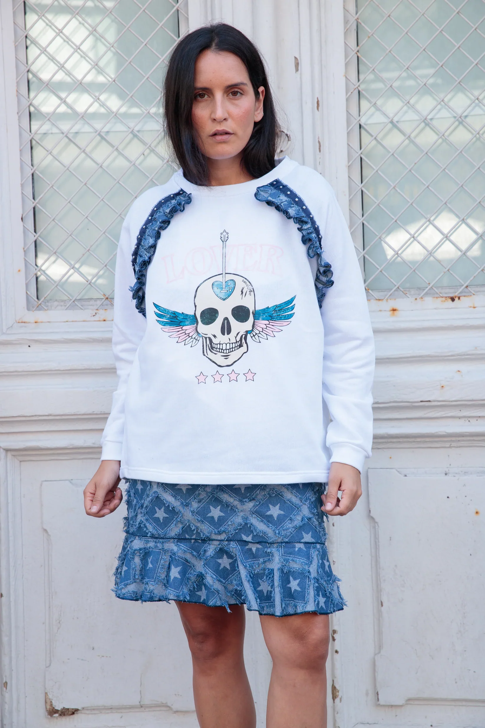 Sweat-shirt SKULL LOVER à volants en denim – Esprit urbain et touche rock féminine