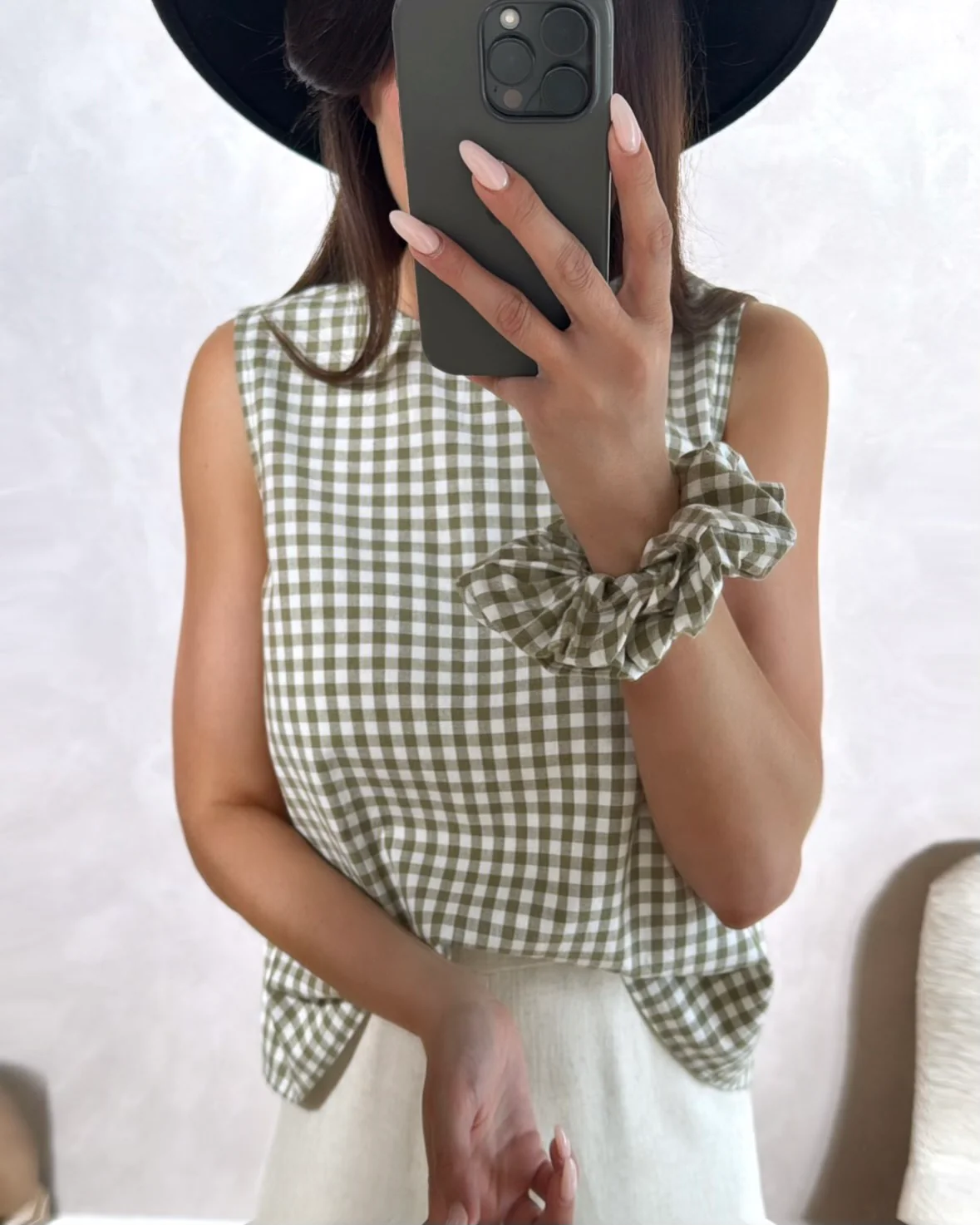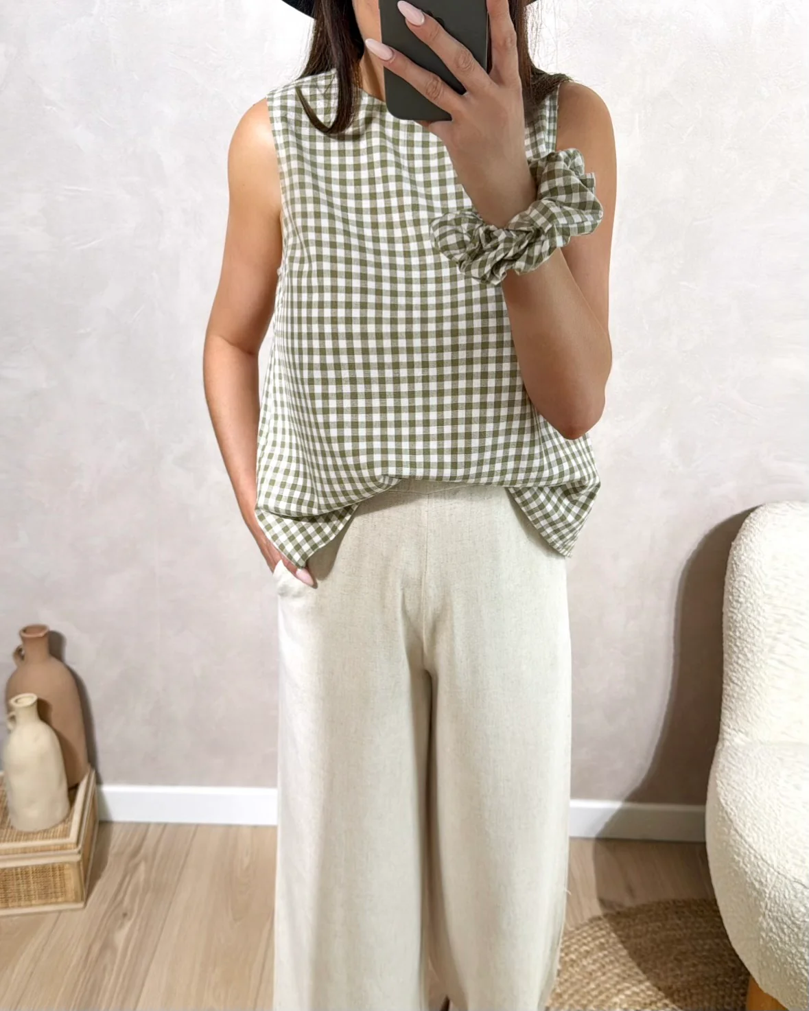 Top Algaé • Fermeture avec boutons sur l’arrière • Sans manches • Ouvert dans le dos • Motif vichy • Pauline mesure 1m65 et porte une taille S • Composition : 100% Coton • Mode d’expédition: La poste, colissimo sans signature . • Frais de port offerts à partir de 69 € d’achat