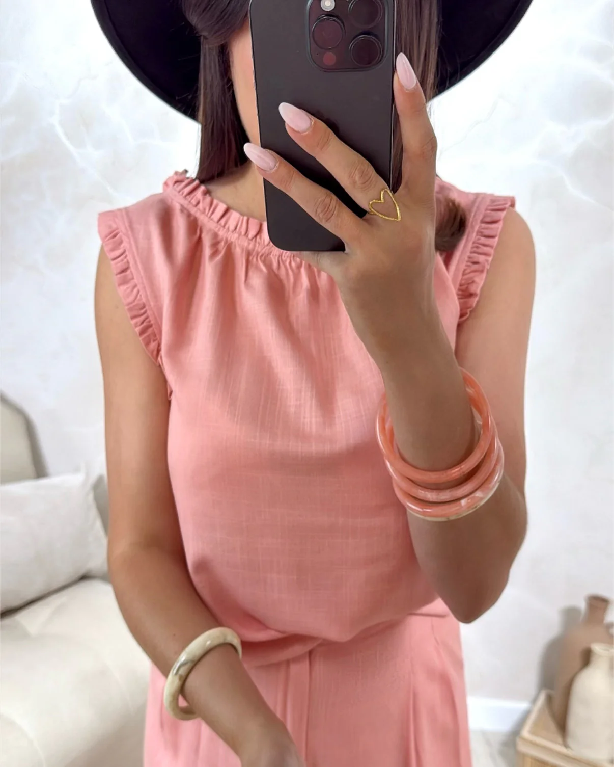 Top Ama • Volants au niveau du col et des manches • Pauline mesure 1m65 et porte une taille S • Matière : 70% Rayon 30% Lin • Mode d’expédition: La poste, colissimo avec ou sans signature. • Livraison offerte à partir de 69€ d’achat