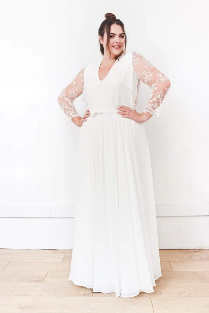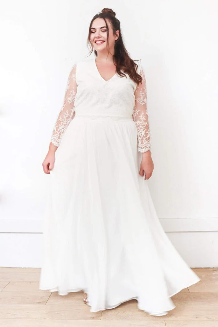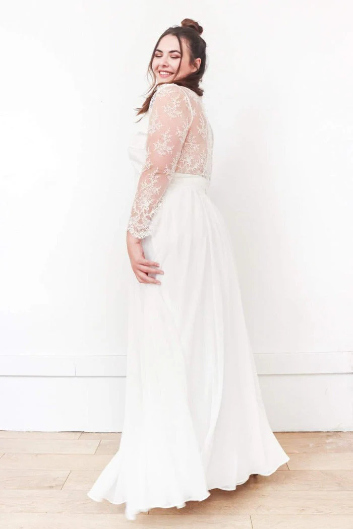 🇫🇷 Fabriqué en France 🇫🇷 – à partir de :-> Sur-mesure : Top 600€ / Jupe 1350€ / Ensemble 1950€-> Prêt à porter (en ligne) : Top 360€ / Jupe 640€ / Ensemble 1000€ ⬇ message alerte ⬇ Jupe Seule ICI Ensemble ICI Description Top dentelle, col V, dos transparent et boutonné, manches 3/4. Tissu […]