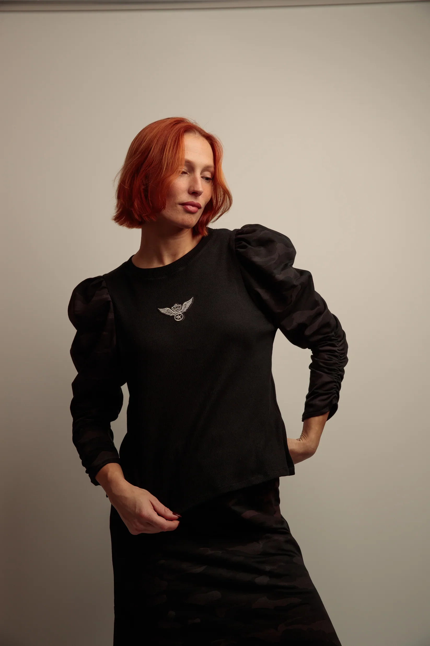 Coupe / Forme : top ajuste avec manches longues bouffantes