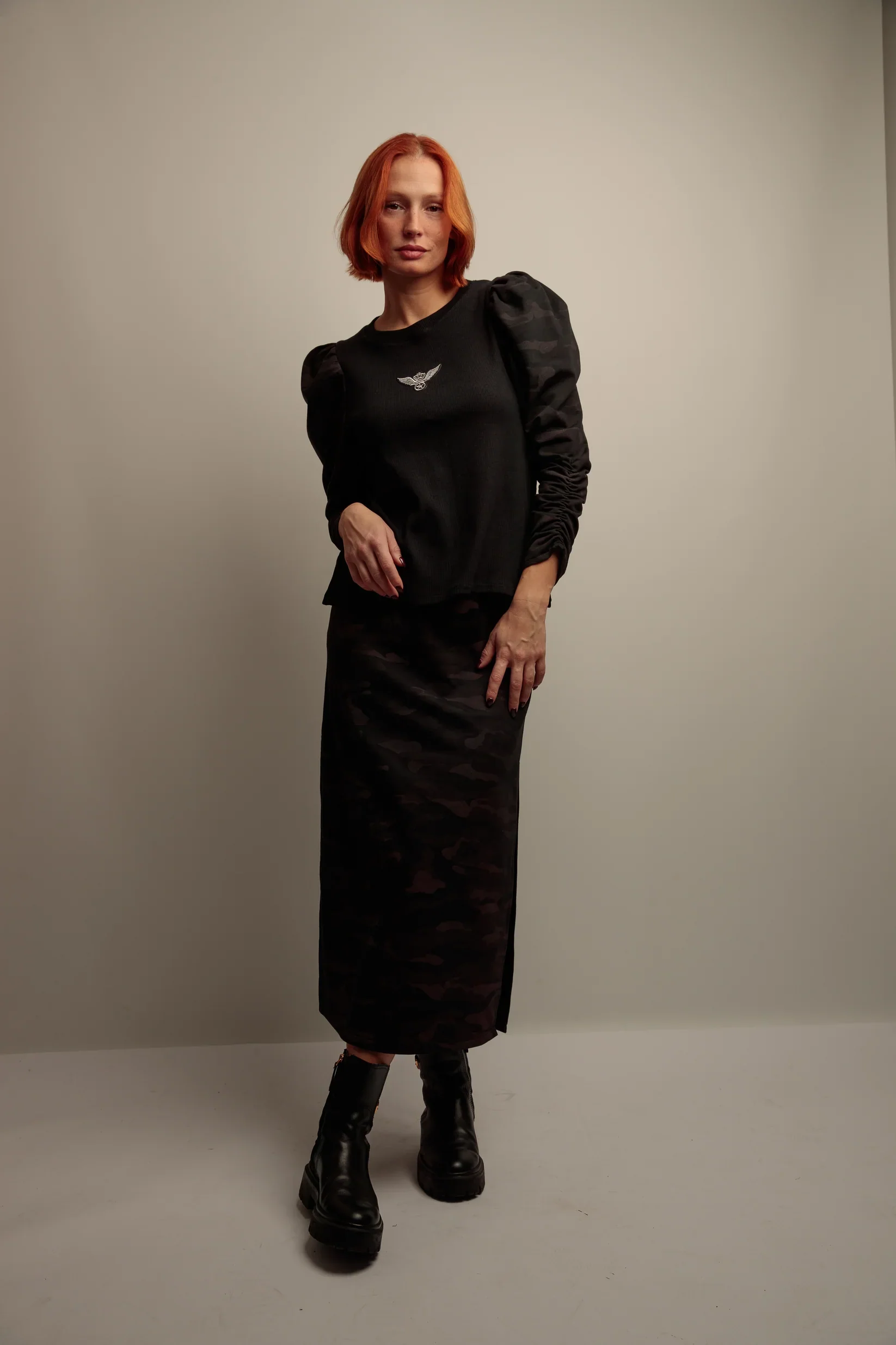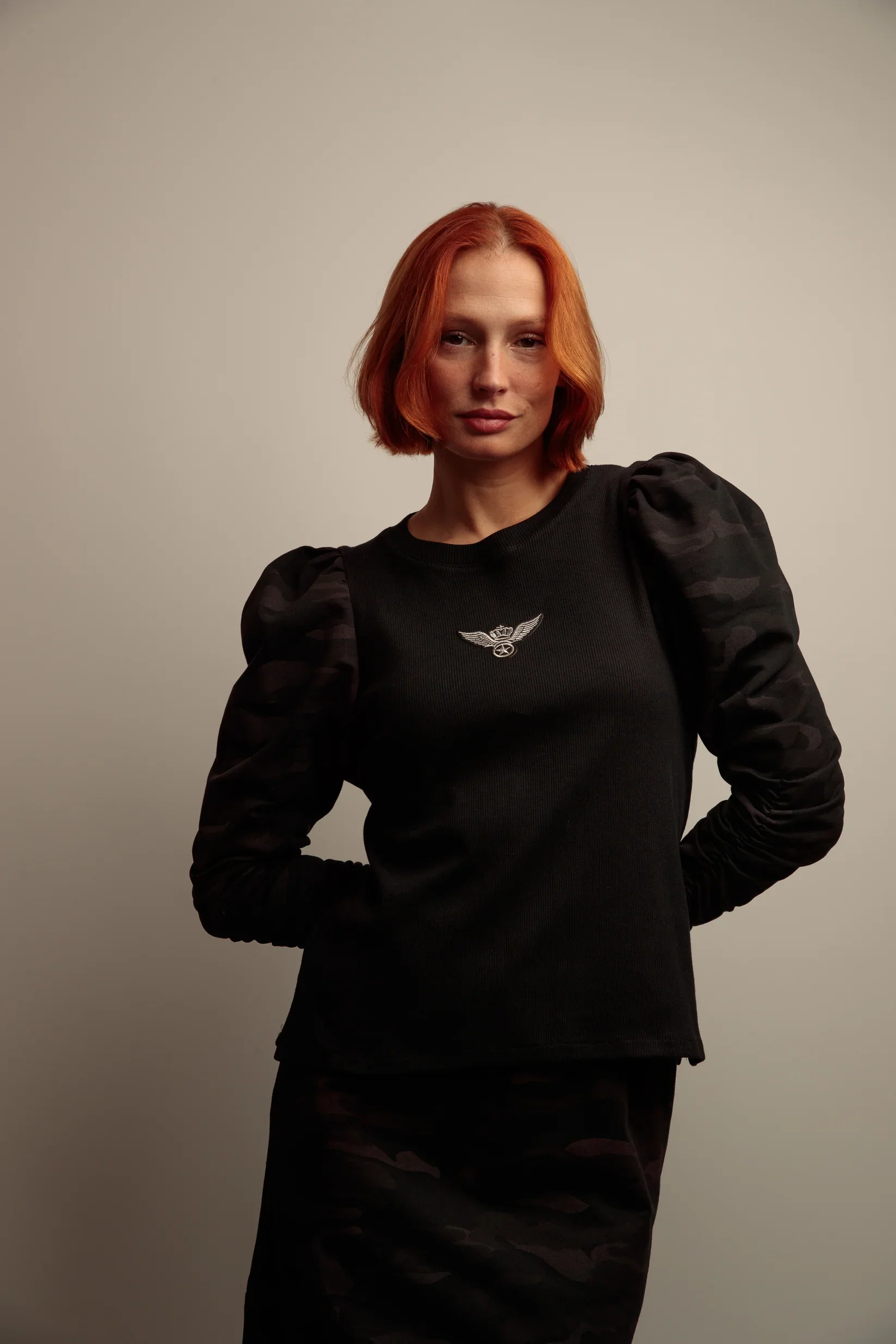 Top Lupita Army Un top en maille cotele qui mise sur une silhouette expressive tout en restant facile a porter. Les manches longues bouffantes sont soulignees de petits clous dores pour un contraste visuel subtil, tandis qu’un patch brode sur le devant apporte une touche distinctive. Il offre une texture confortable et soigneusement travaillée. Coupe […]
