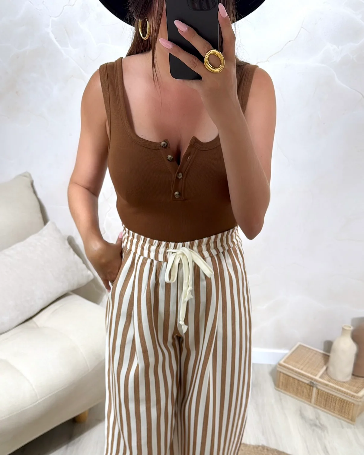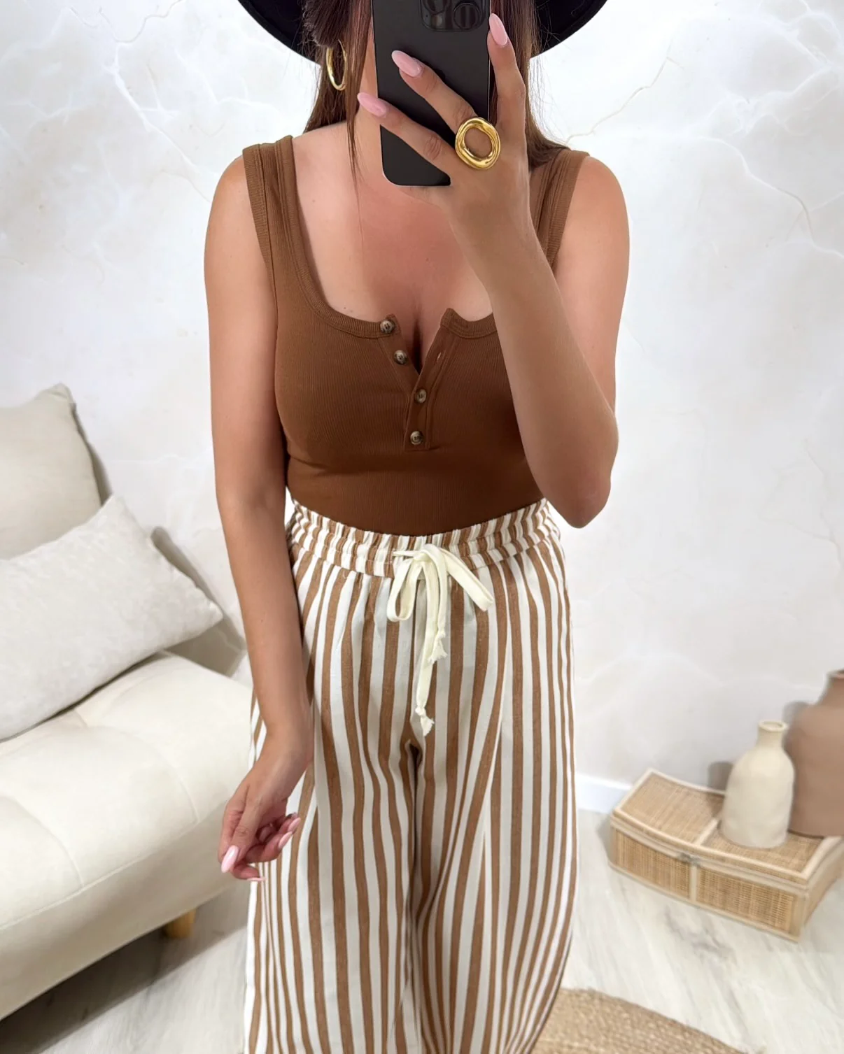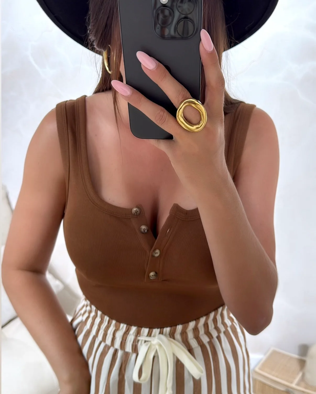 Top Nappa • Débardeur en maille côtelée • 4 petits boutons • Pauline mesure 1m65 et porte une taille S • Matière : 46% Coton, 46% Rayon, 8% Elasthanne • Mode d’expédition: Colissimo avec ou sans signature. • Livraison offerte à partir de 69€ d’achat
