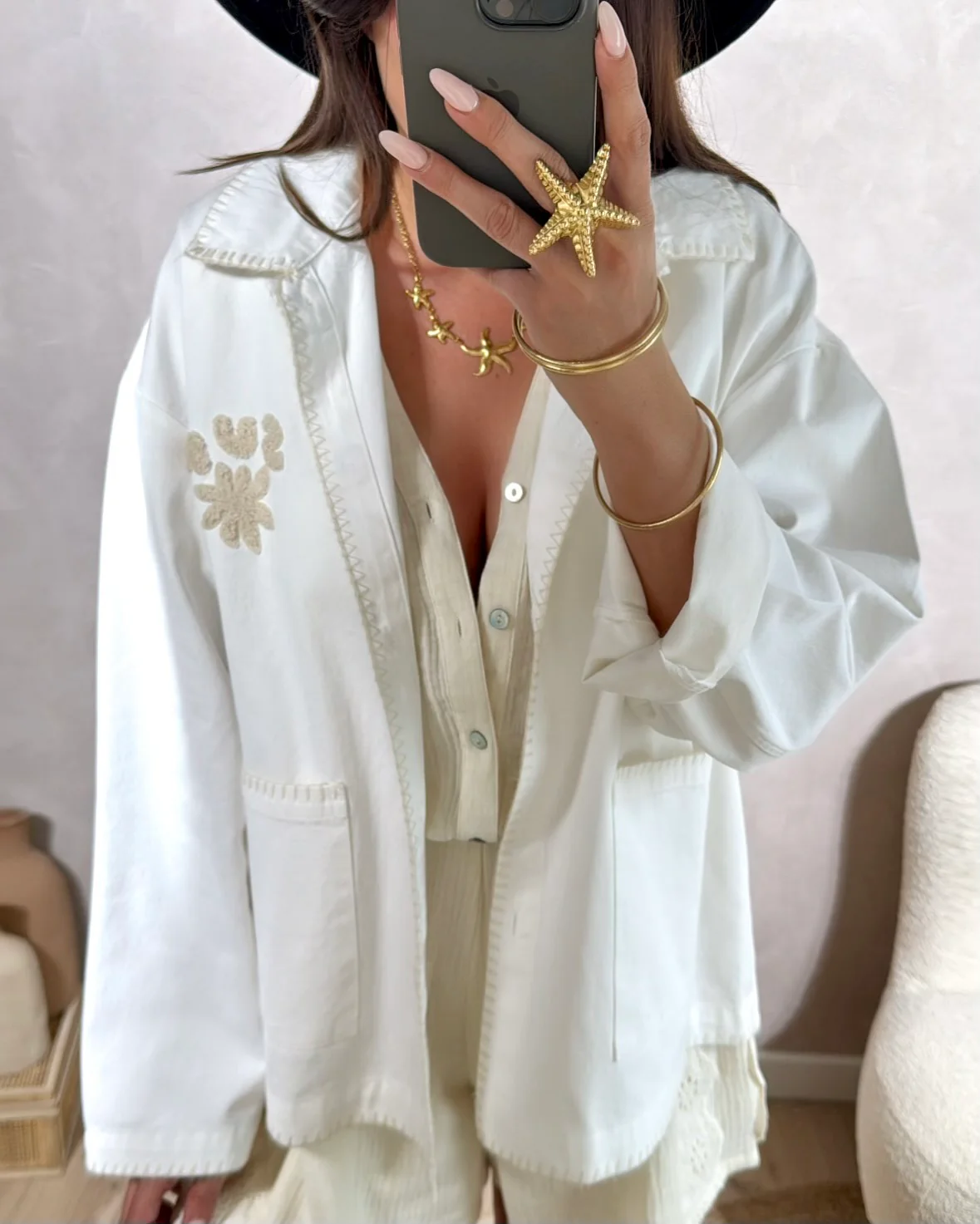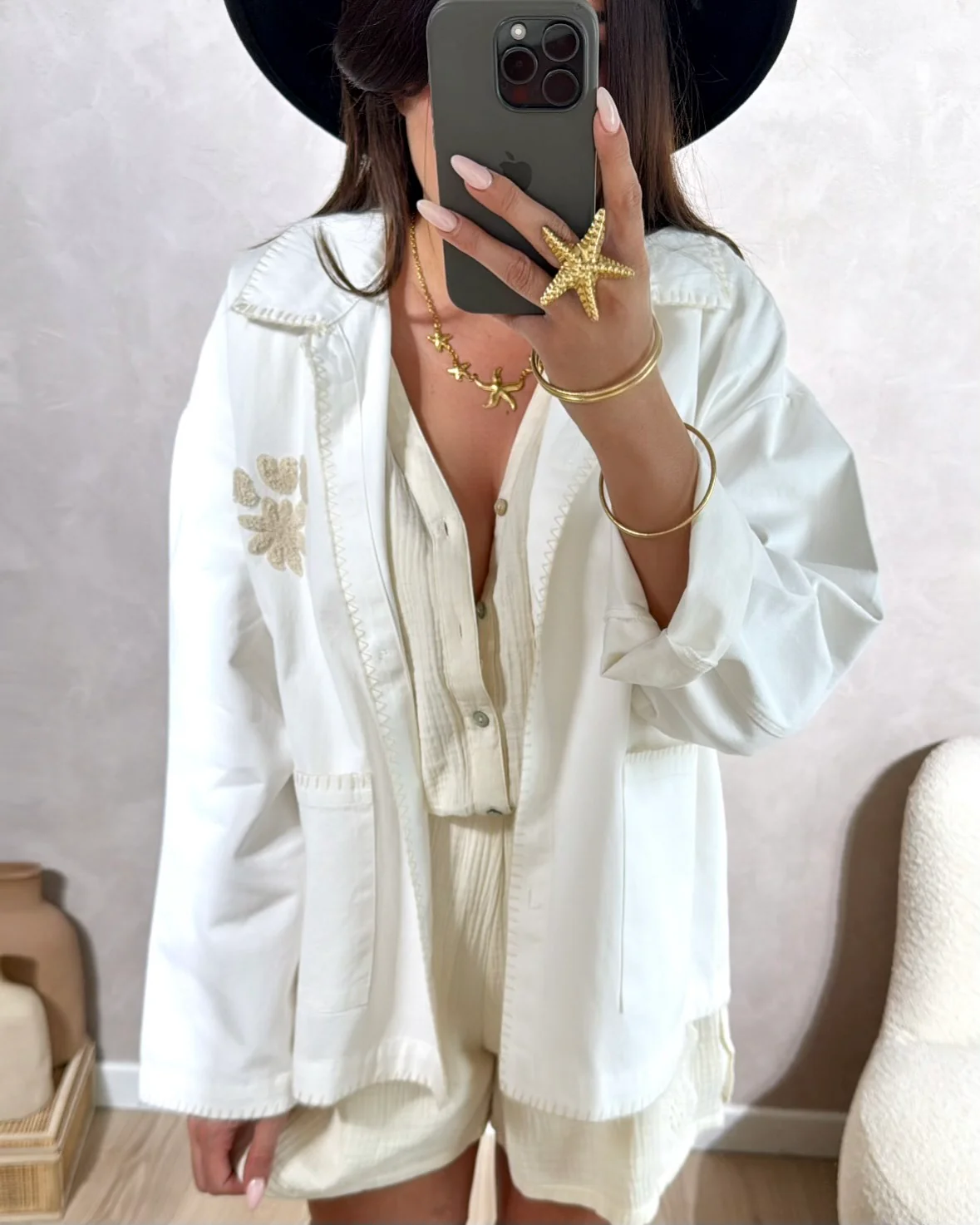 Veste Alizéa • Coupe loose • Peut se porter ouverte ou fermé • Deux poches sur le devant • Pauline mesure 1m65 et porte une taille unique • Composition : 100% Coton • Mode d’expédition : Colissimo avec ou sans signature. • Livraison offerte à partir de 69€ d’achat