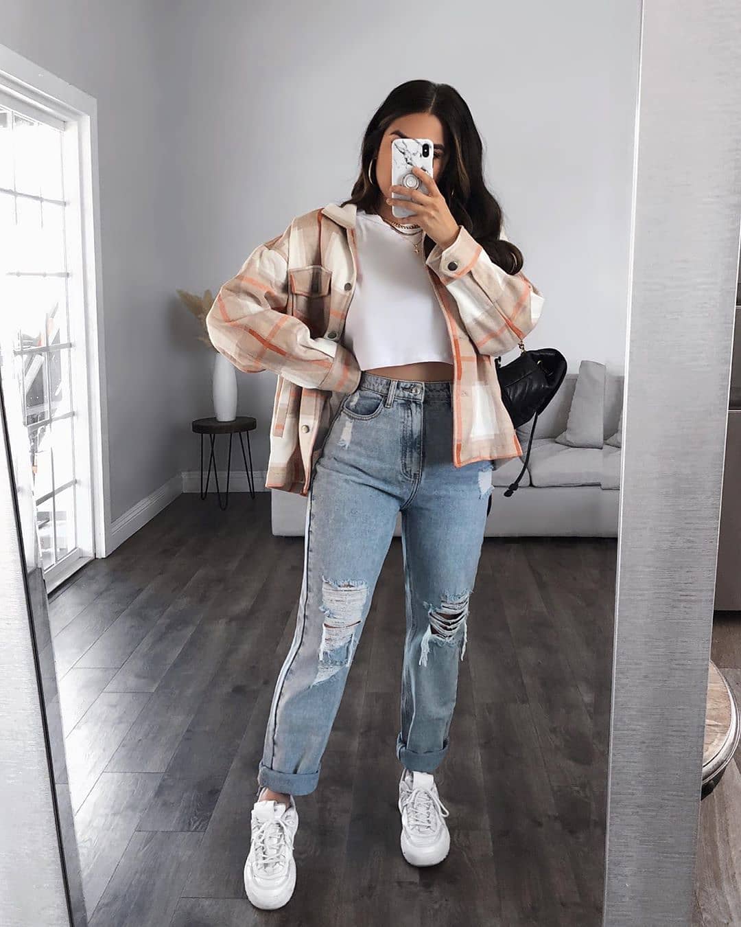 Veste Chemise à Carreaux Beige