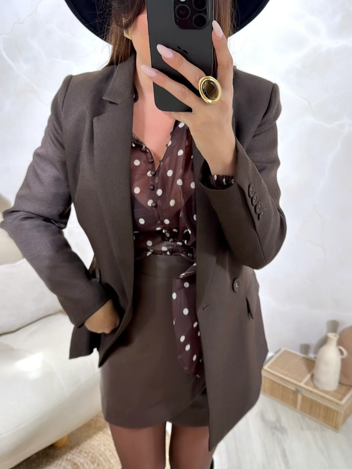 Veste St Louis Chocolat • Blazer • Pauline mesure 1m65 et porte une taille S • Composition : 70% Polyester, 30% Imitation Laine • Mode d’expédition : Colissimo avec ou sans signature. • Livraison offerte à partir de 69€ d’achat