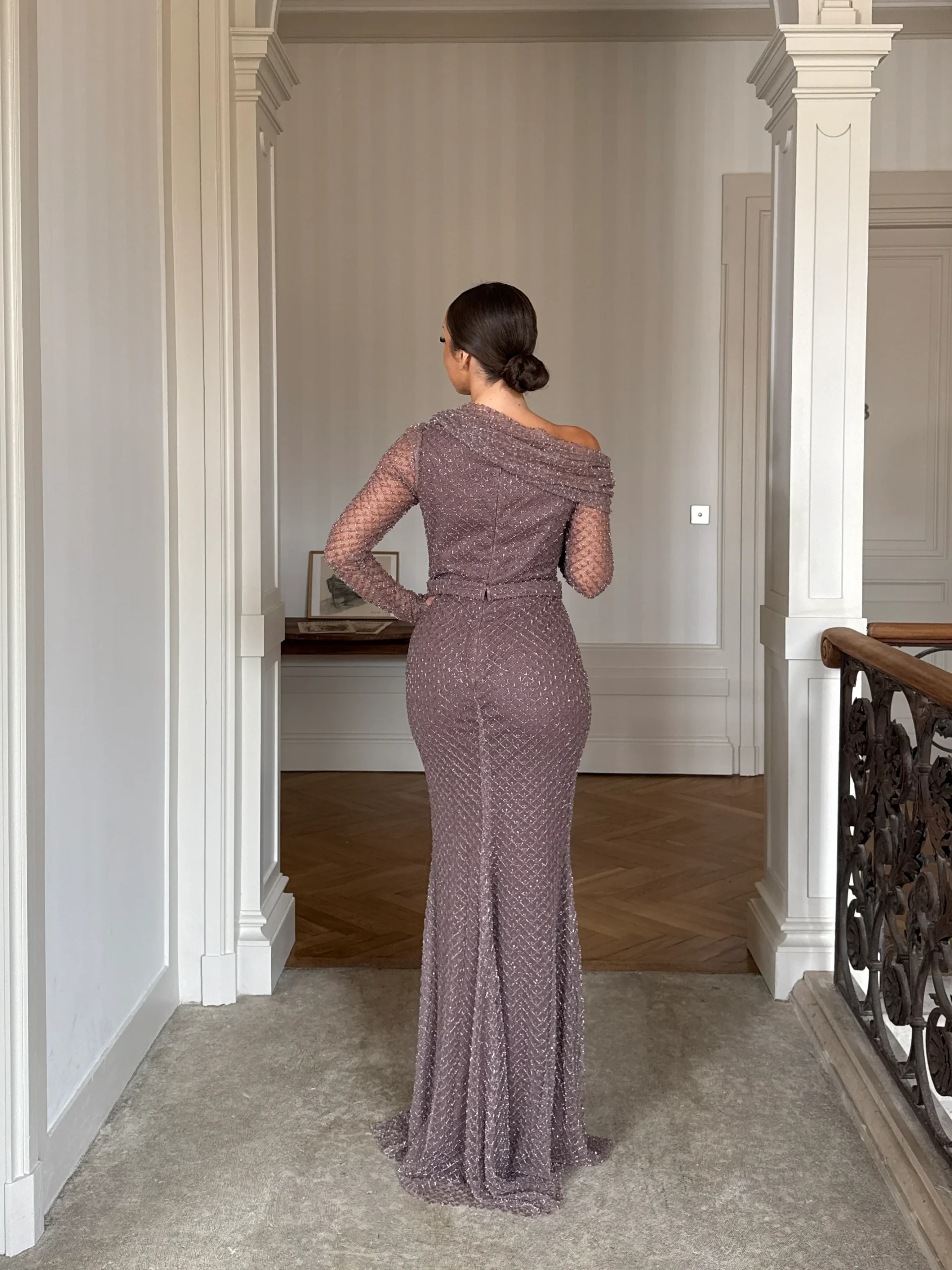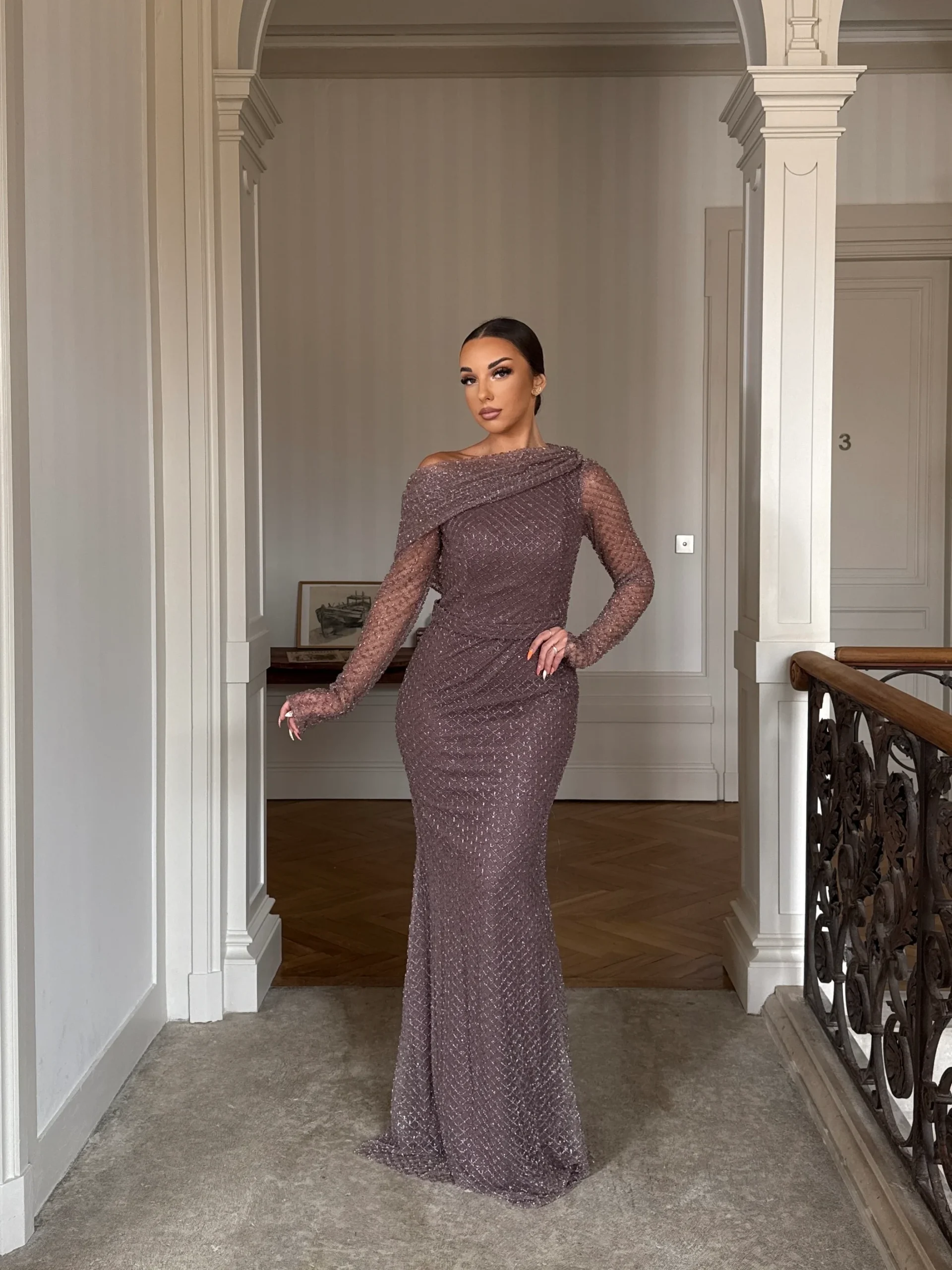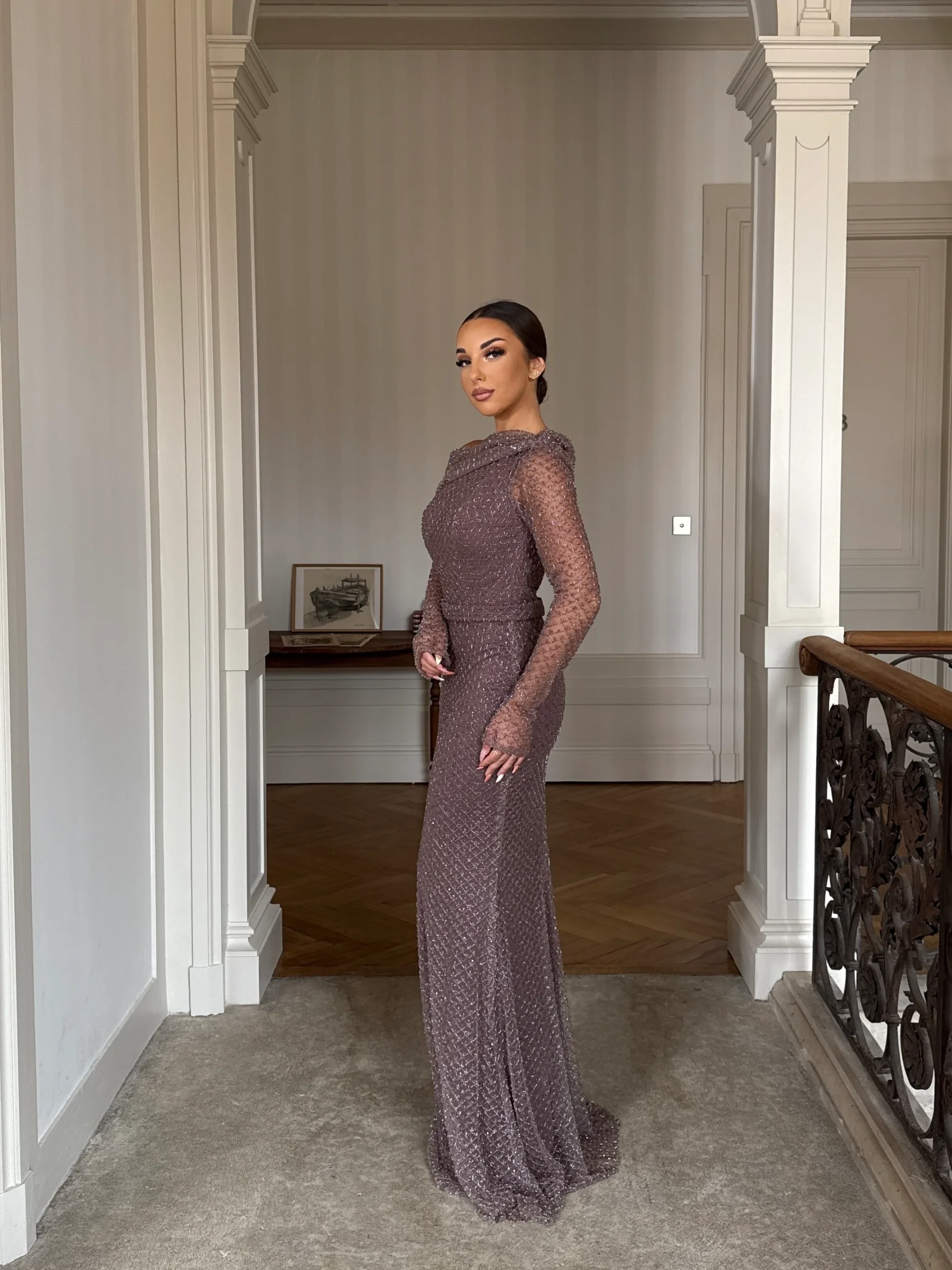 Découvrez dès maintenant la robe de soirée taupe élégante, une création pensée pour sublimer vos plus beaux événements. En effet, son tissu délicatement scintillant épouse les formes avec douceur tout en offrant un rendu lumineux et sophistiqué. De plus, ses manches longues apportent une touche de raffinement supplémentaire, renforçant l’allure gracieuse de la silhouette. Conçue sans fente, cette robe mise sur une élégance sobre et affirmée, idéale pour une réception, un gala ou un mariage chic.